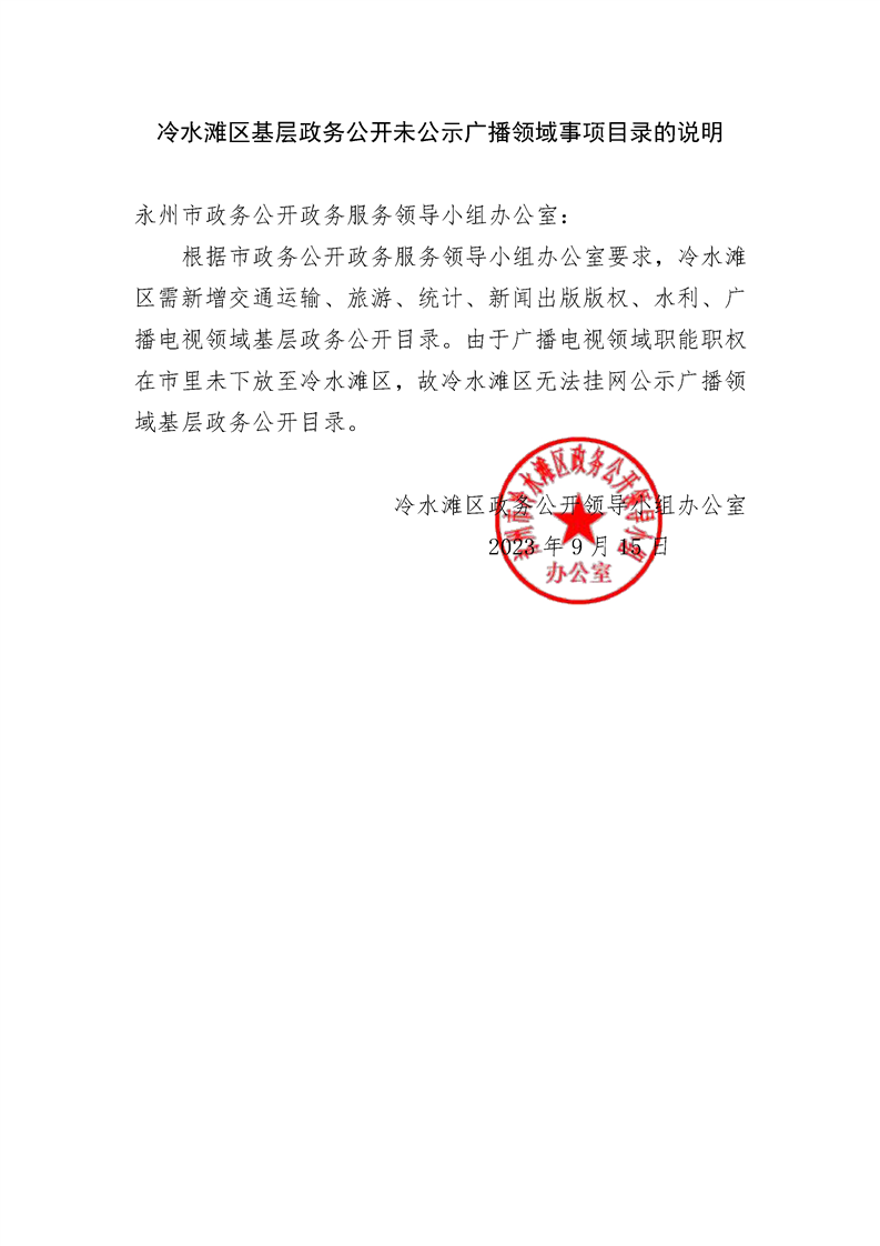 关于未公示广播电视领域基层政务公开目录及内容的说明