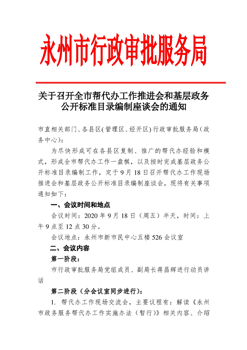 召开全市帮代办工作推进会议和基层政务公开标准目录编制座谈会的通知