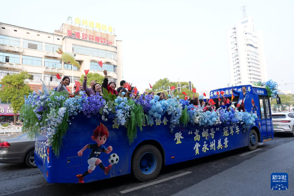 自去年年底夺得“湘超”冠军后,千年古城永州的足球热情持续高涨,城区街头巷尾的立柱广告牌、户外电子屏播放着来自各地网友的祝贺。永州市民积极回应,自发设立补给站,用脐橙、柚子等特产迎接八方来客。