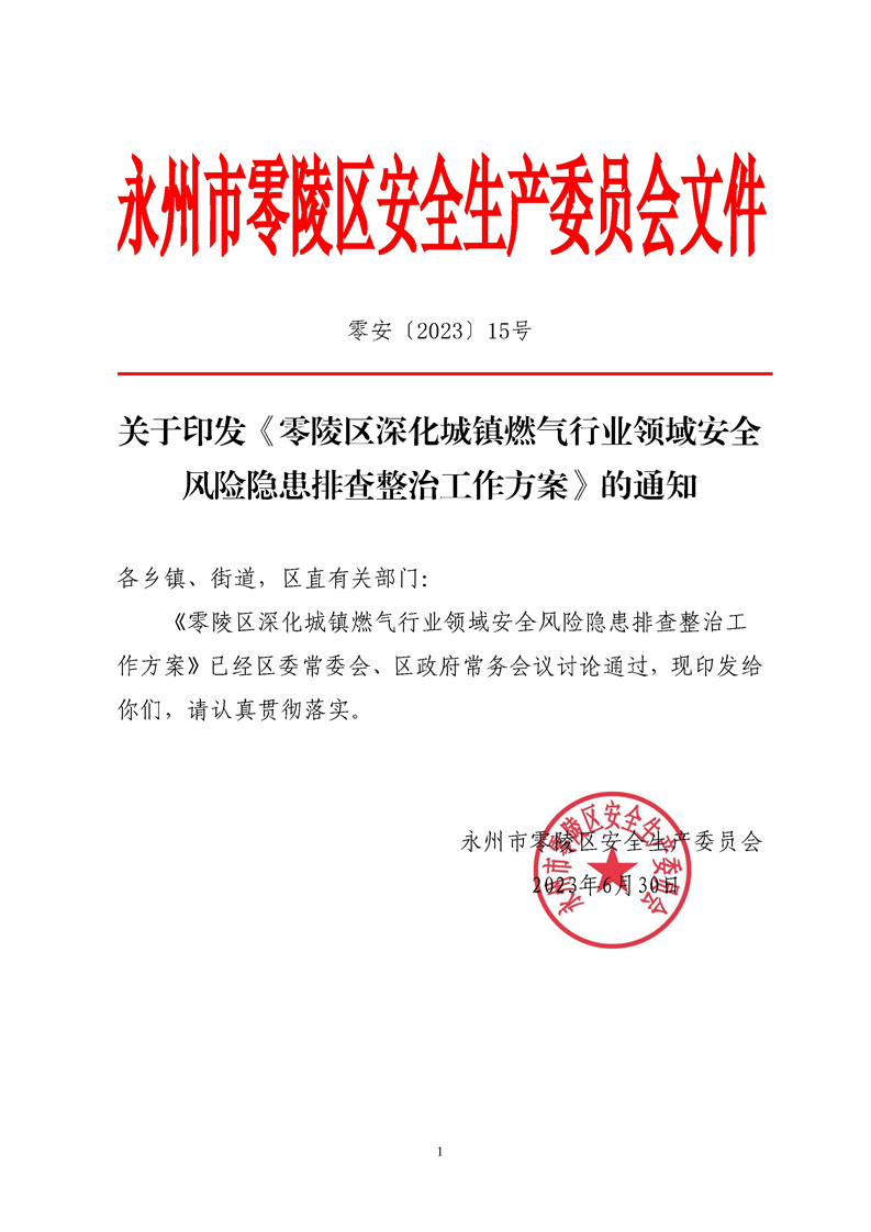 零安(2023)15号关于印发零陵区深化城镇燃气行业领域安全风险隐患排查整治工作方案的通知