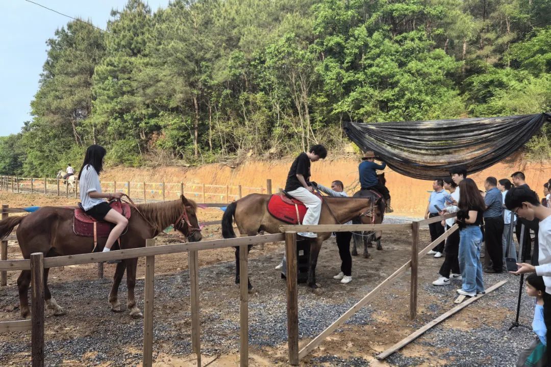 “驾!”一声吆喝,一匹匹骏马在农庄的空地上奔腾起来。孩子们骑上骏马,兴奋地尖叫,眼中满是新奇与喜悦;爸爸们英姿飒爽,策马奔腾,尽情享受风驰电掣的快感;妈妈们则忙着拍照打卡,记录下这美好的瞬间,农庄仿佛变成了辽阔的“草原牧场”。而在射箭场,一场激烈的“神射手”PK赛正在上演。游客们弯弓搭箭,屏气凝神,瞄准靶心,胜负欲被瞬间点燃。最令人心动的是,获胜者还能将农庄自养的土鸡带回家,这份独特的奖品让大家跃跃欲试,现场气氛紧张又热烈。