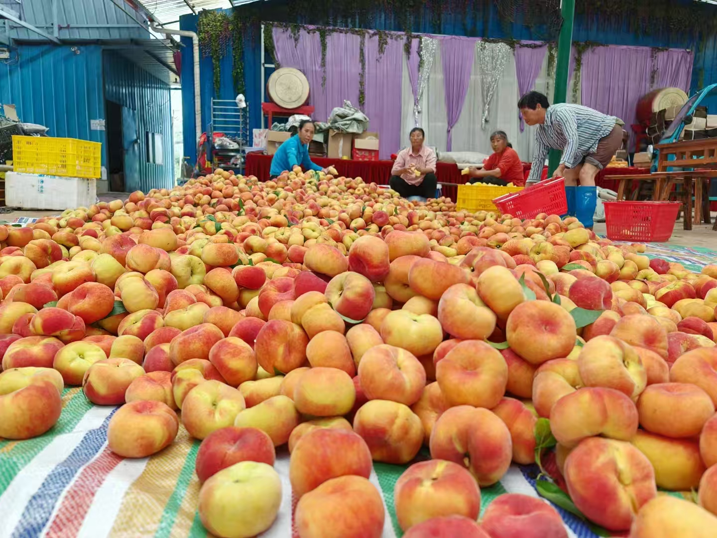 在园区临时仓库,工人们正有序进行分拣、包装作业,一箱箱蟠桃即将发往全国各地。园区建设还为周边村民提供了就业机会。务工人员蒋女士说:“在这里工作既能照顾家庭,月收入还有3000多元,我很满意。”
