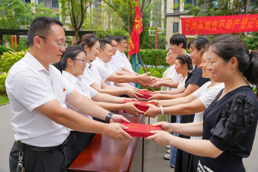 本网讯(记者 陈斌 郑炜 赵贵松)零陵区聚焦群众反映强烈的不动产登记“办证难”问题,践行“人民至上”理念,多措并举推动问题解决。6月19日下午,永州市不动产登记中心零陵区分中心在金科桃李郡小区开展集中颁证活动,向7名业主代表发放首批115本不动产权证,后续将由业主代表分发给小区住户。