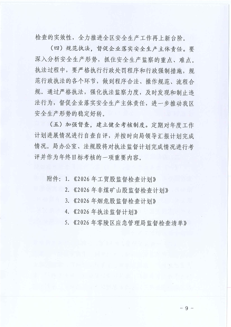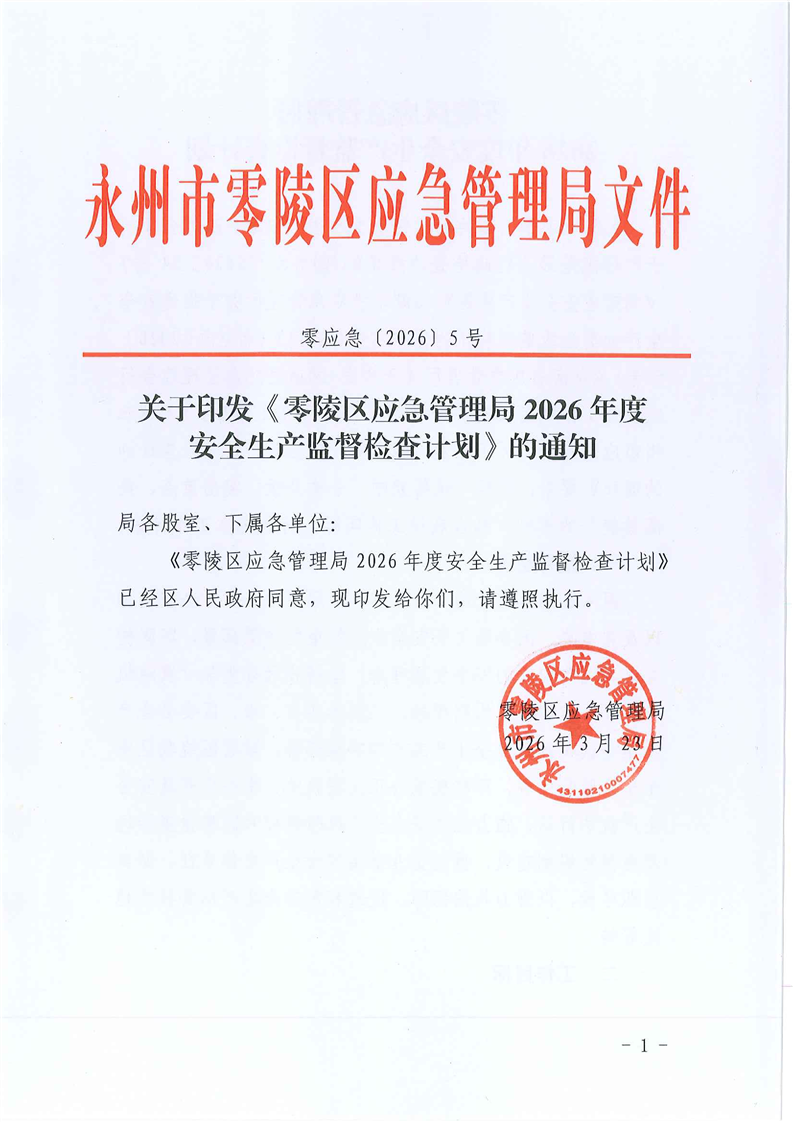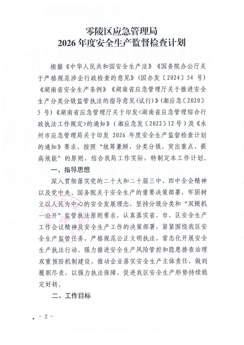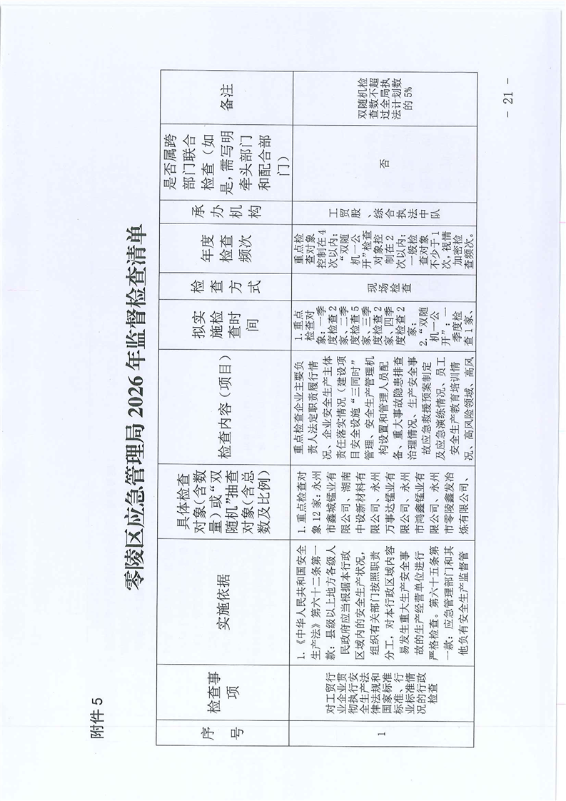 零陵区应急管理局2026年度安全生产监督检查计划