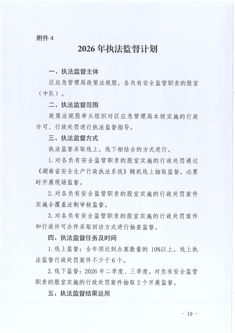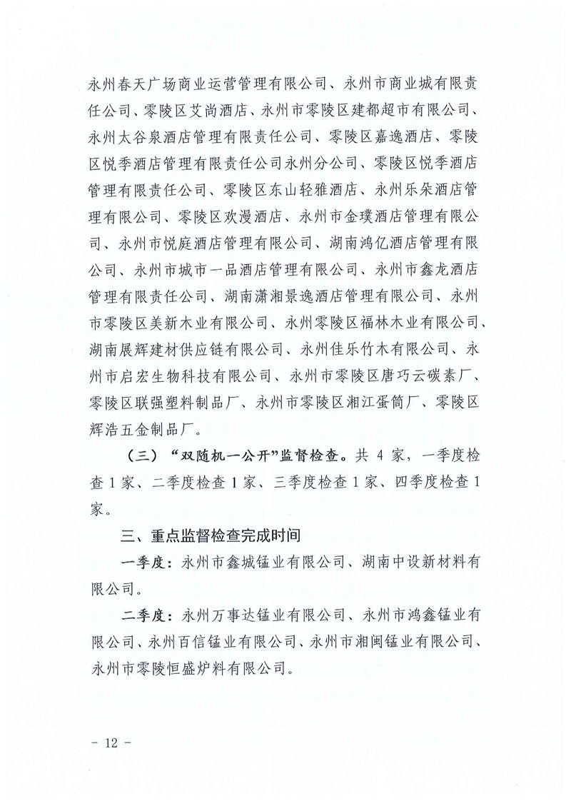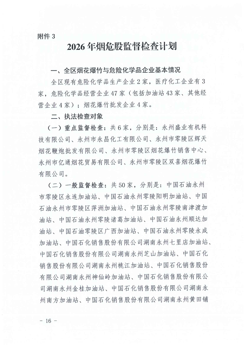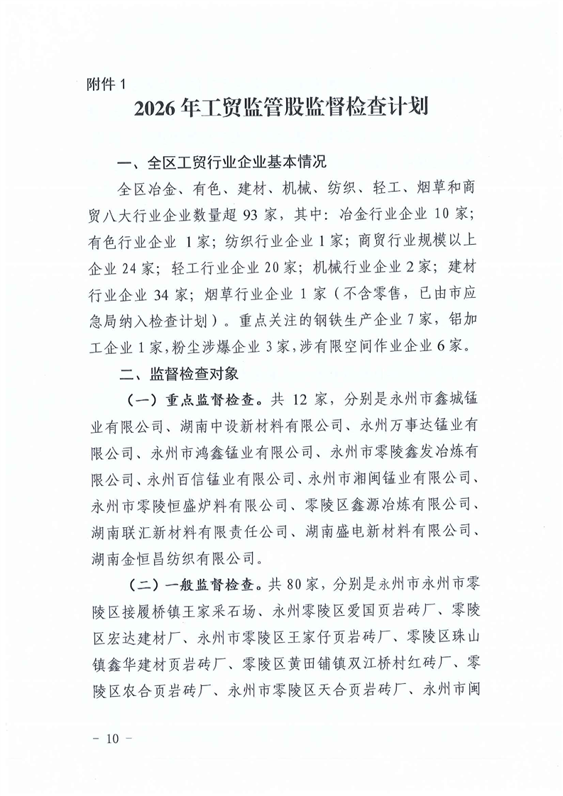 零陵区应急管理局2026年度安全生产监督检查计划