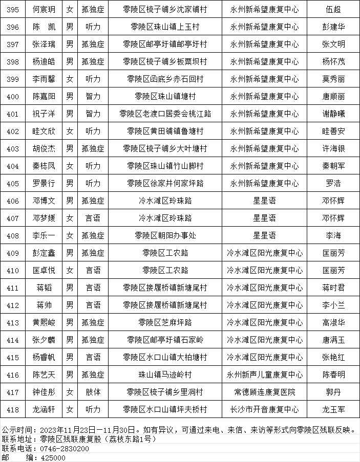 2023年零陵区重点民生实事儿童康复救助项目公示