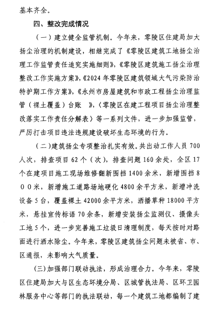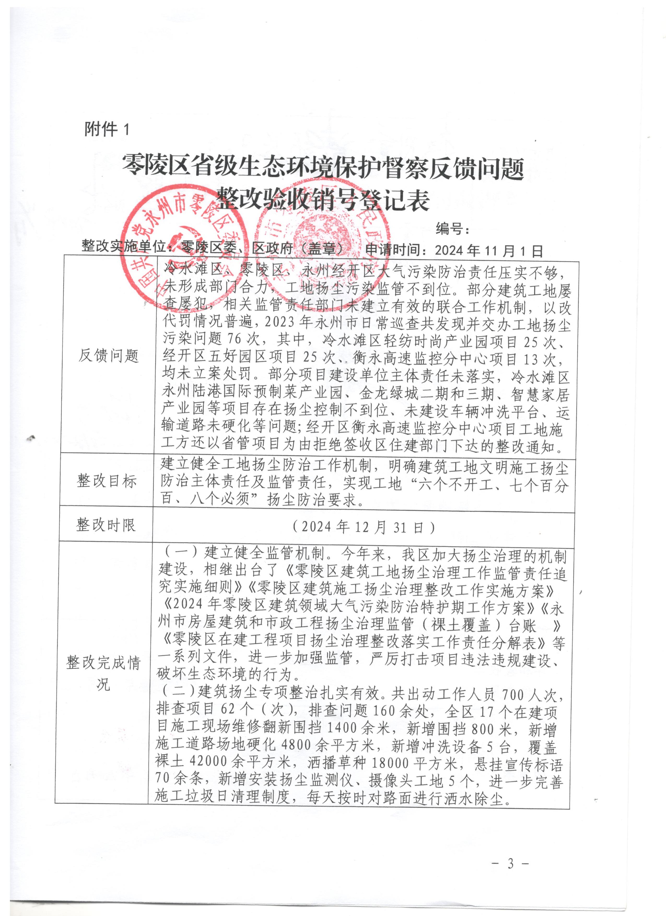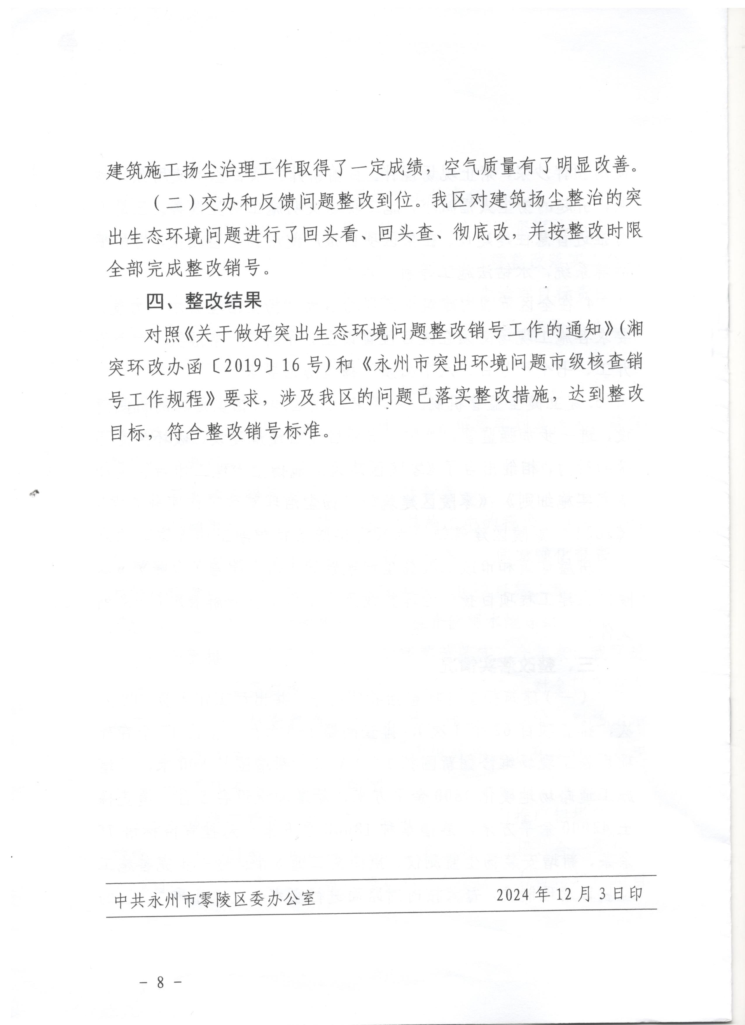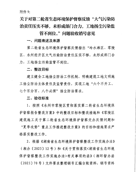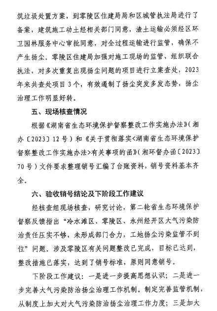 零陵区省级生态环境保护督察反馈问题整改销号的公示