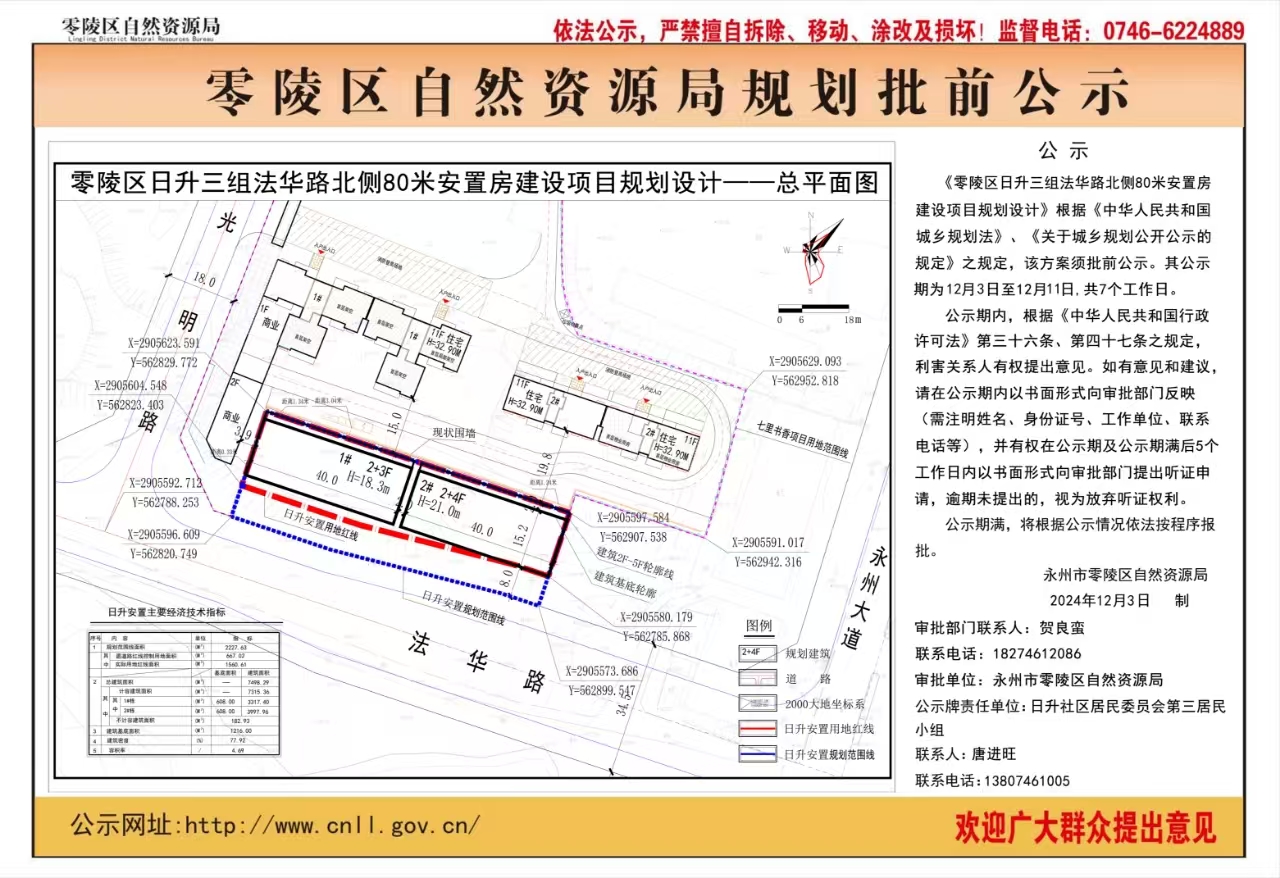 关于零陵区日升三组法华路北侧80米安置房建设项目规划批前的公示