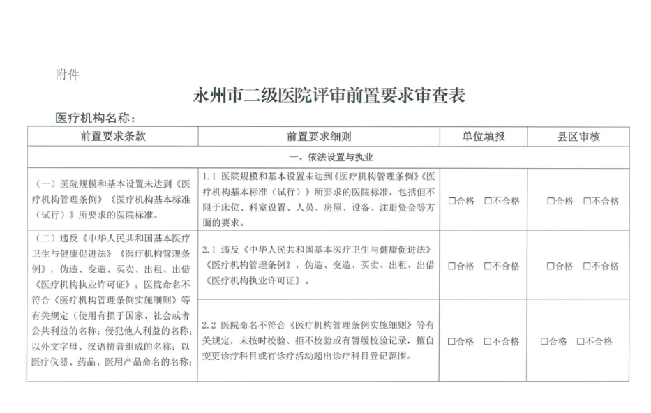 零陵区卫生健康局关于永州湘桂医院等级评审前置要求审核公示