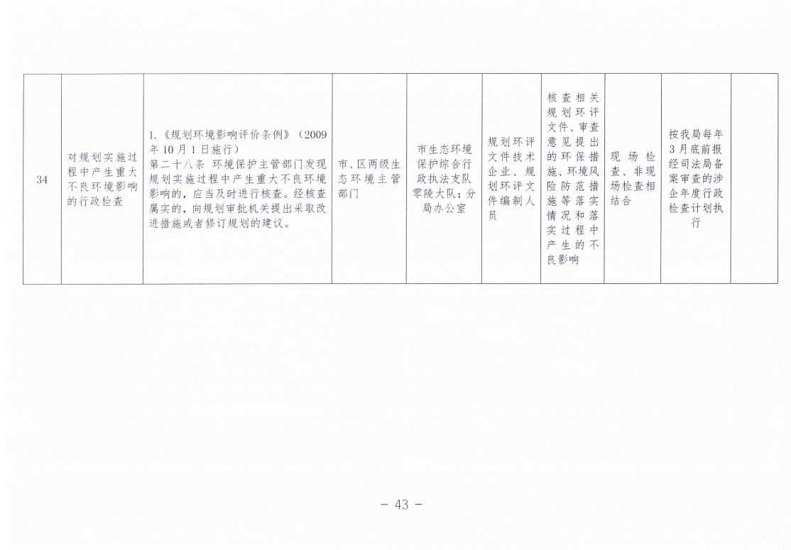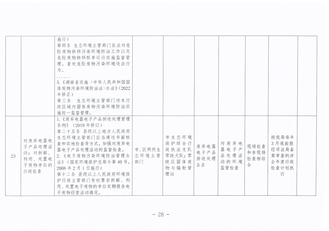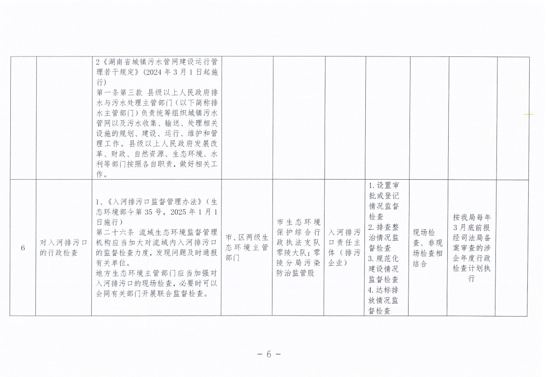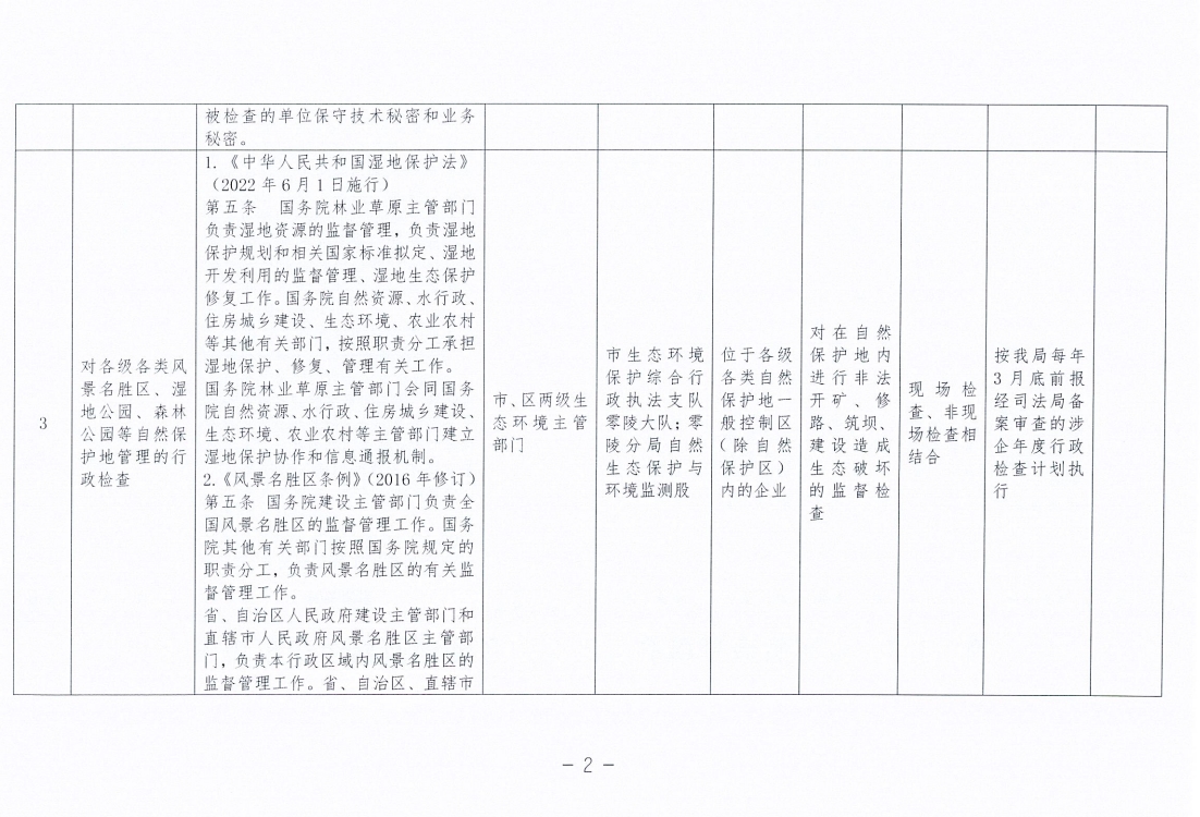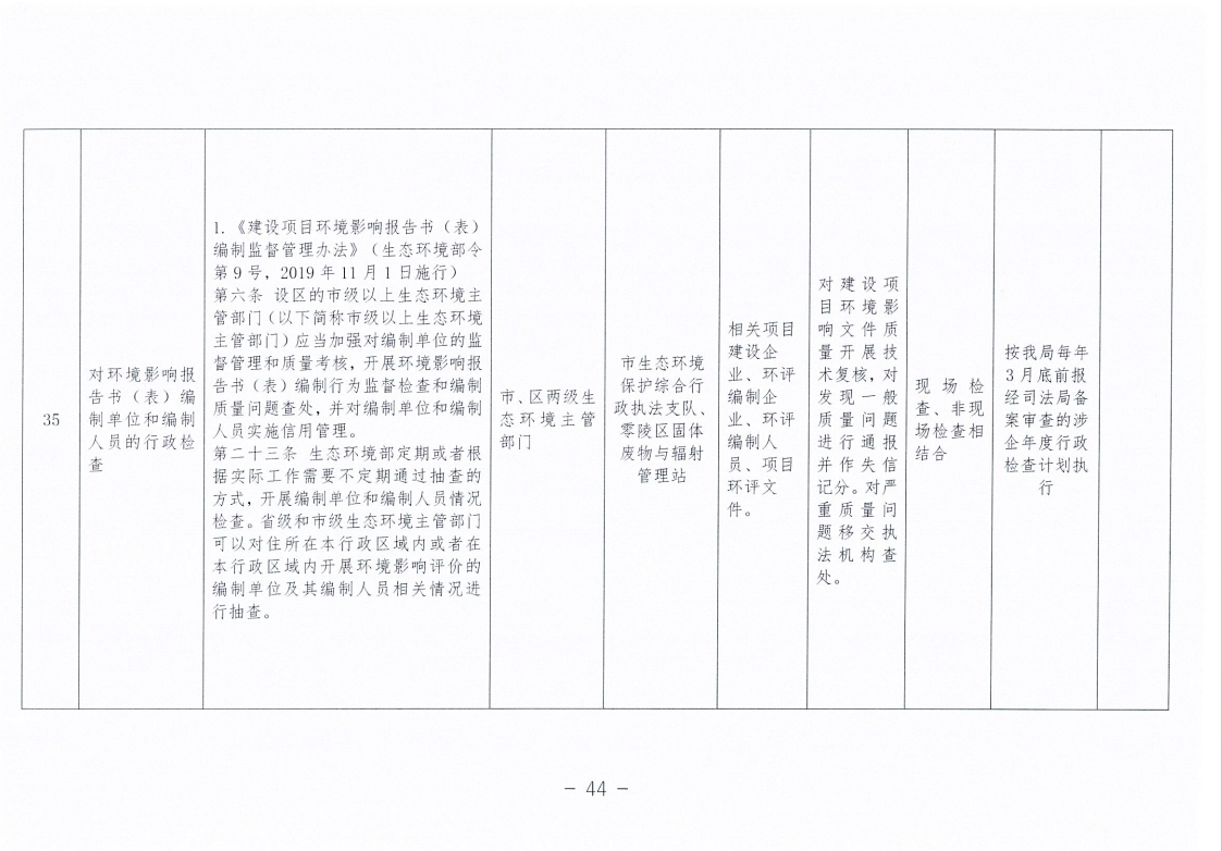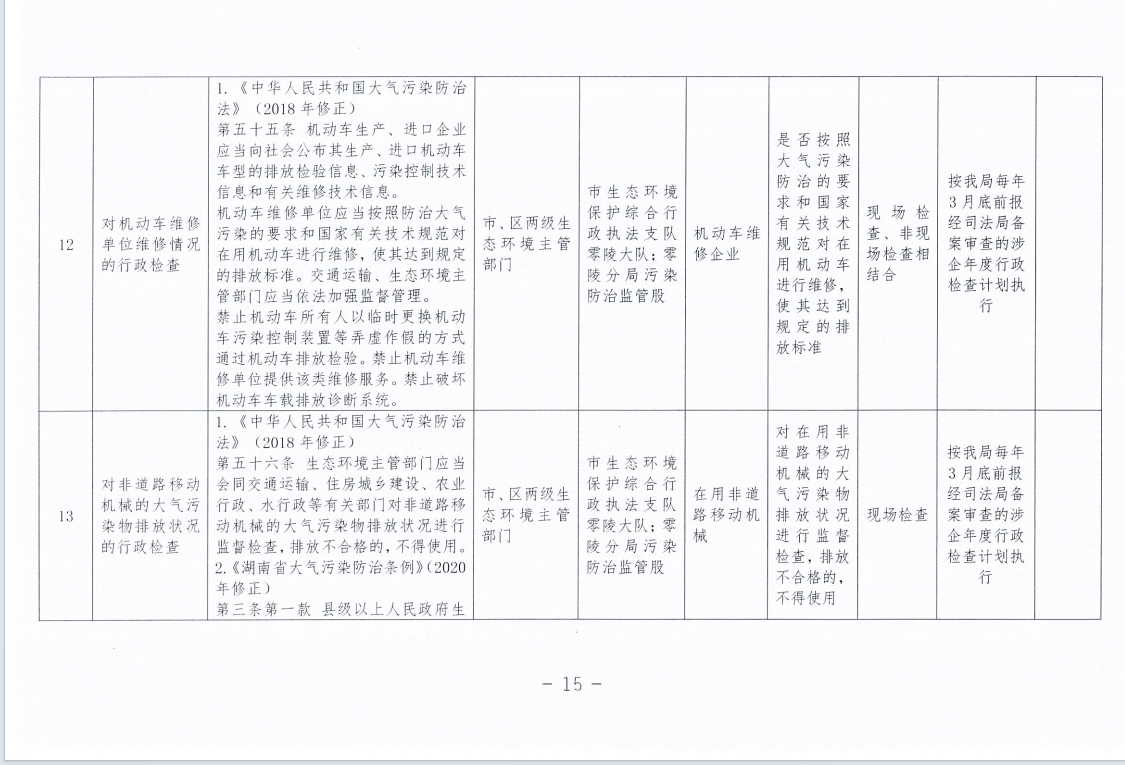 永州市生态环境局零陵分局涉企行政检查事项清单