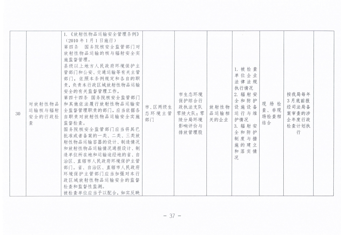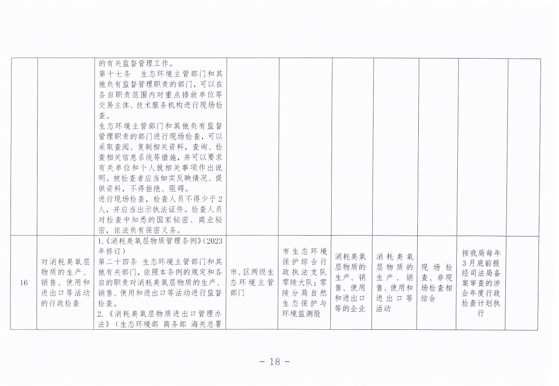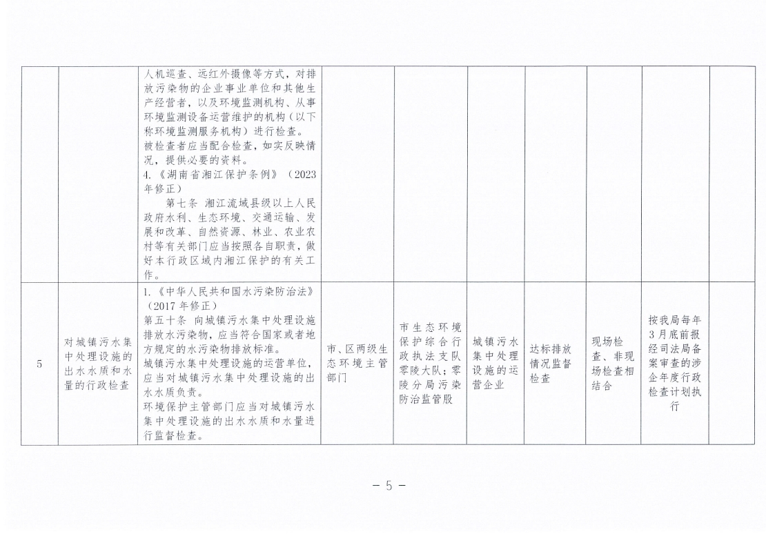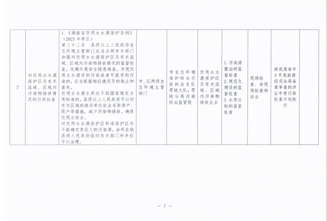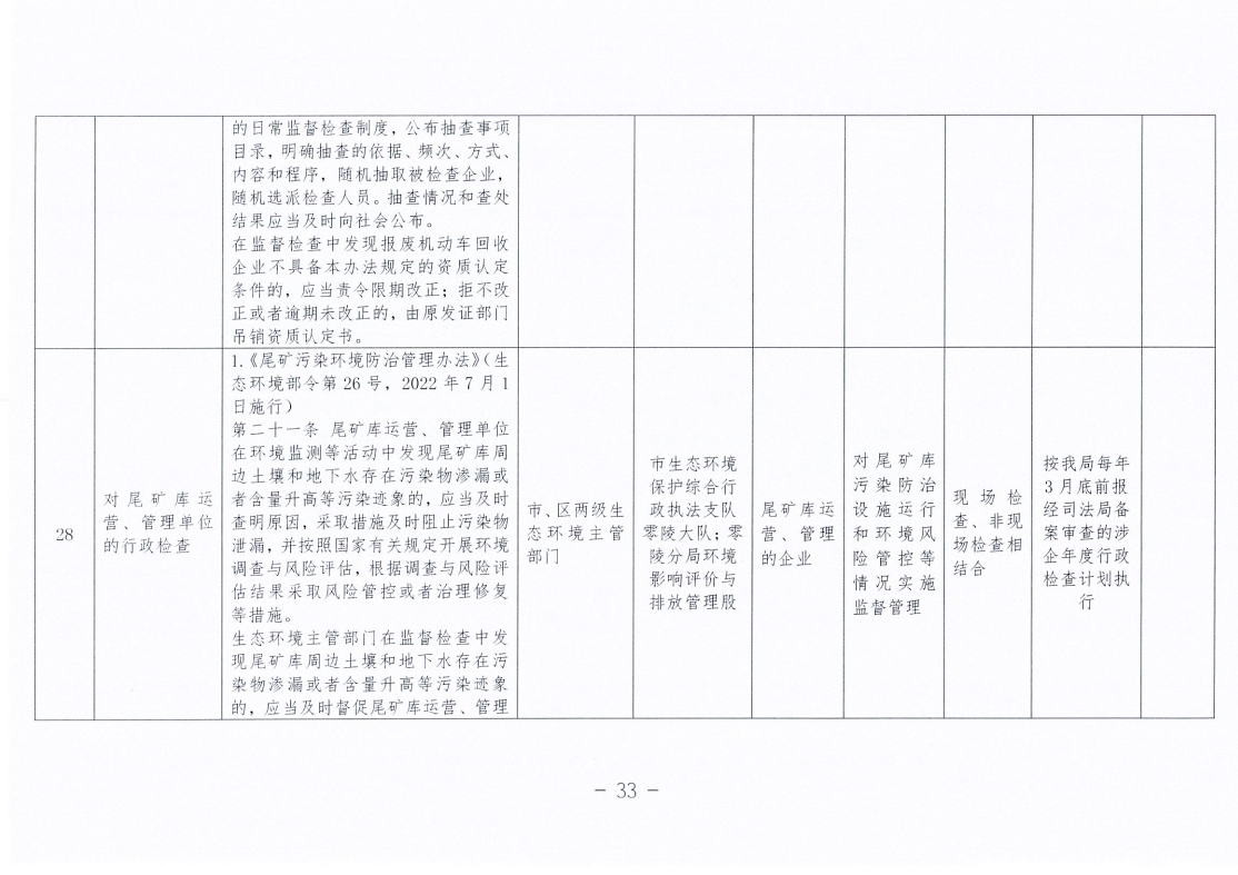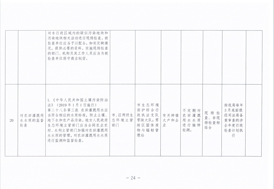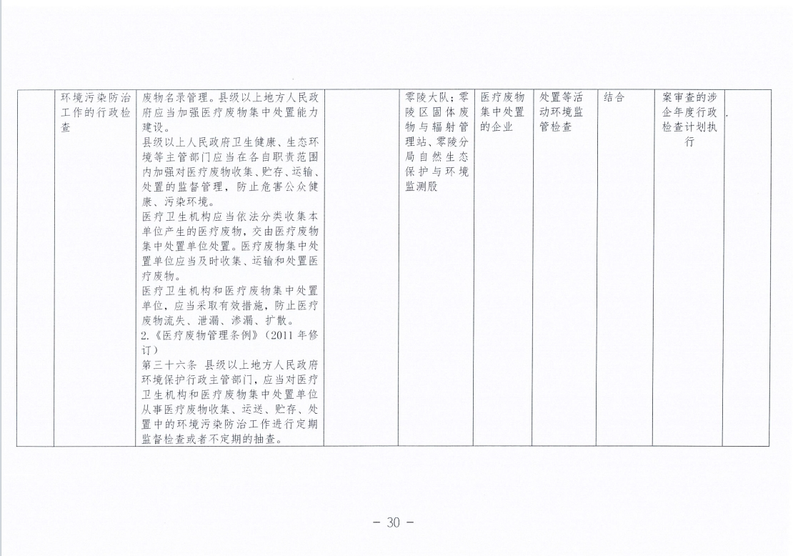 永州市生态环境局零陵分局涉企行政检查事项清单