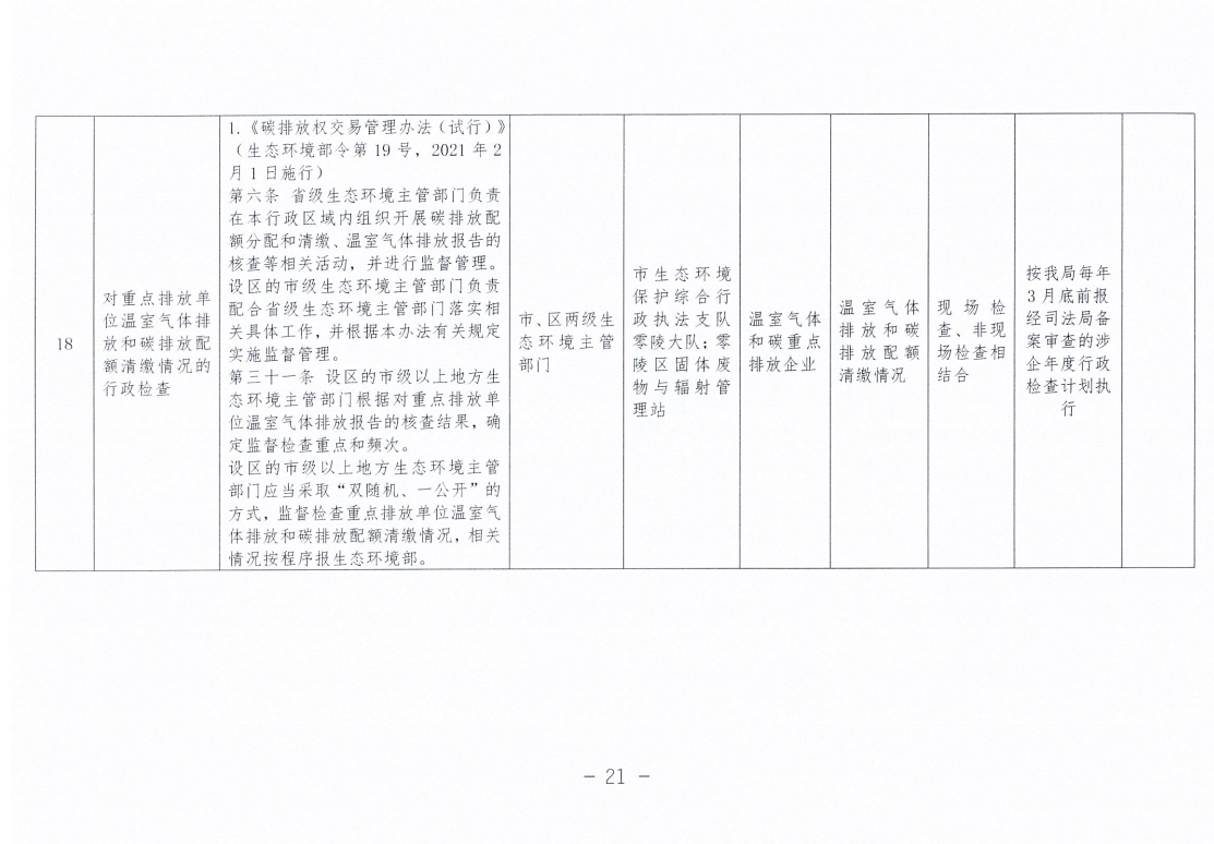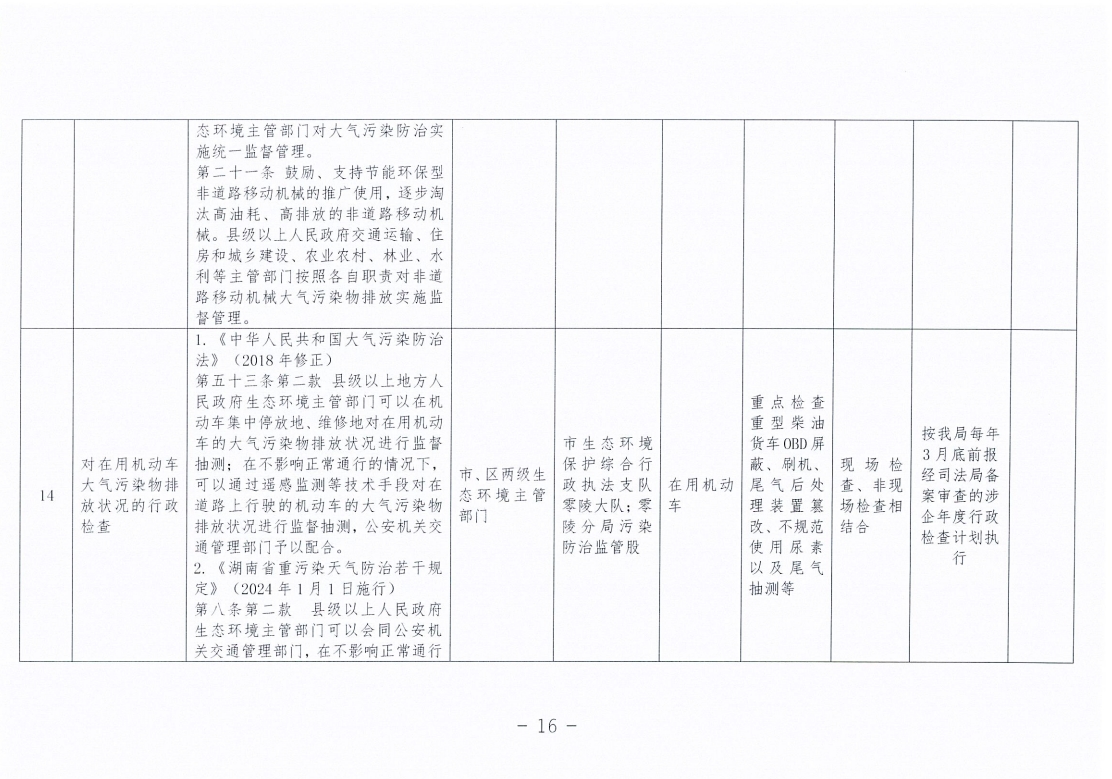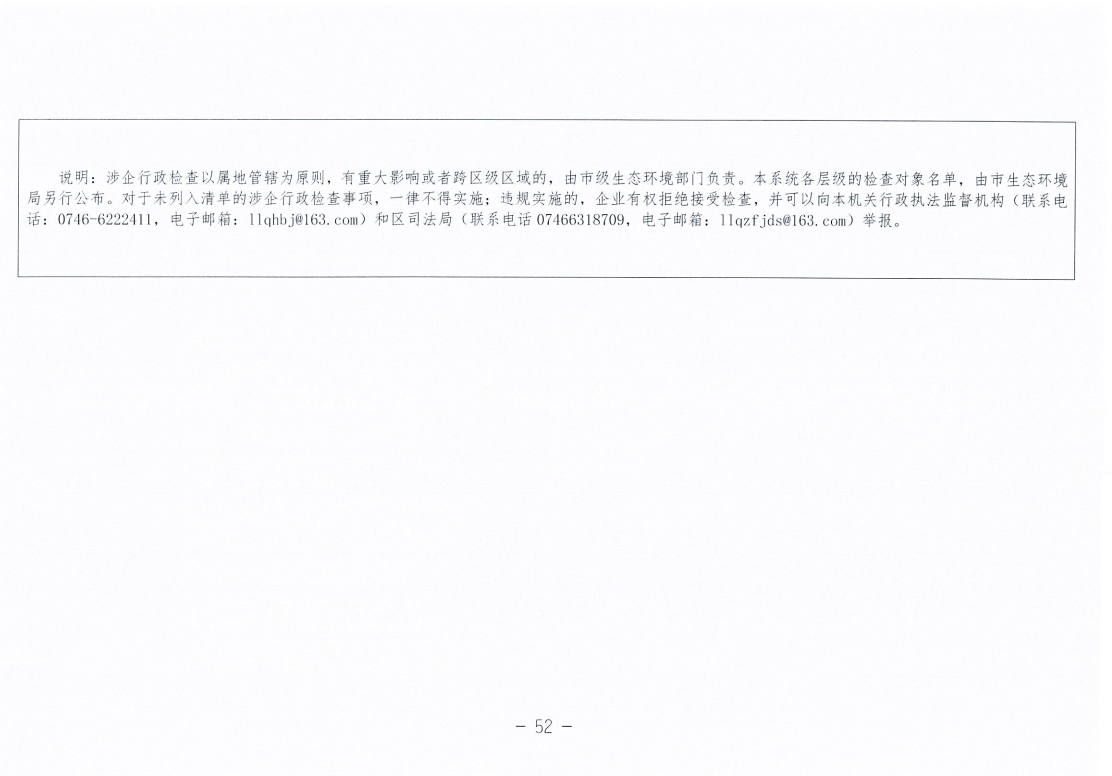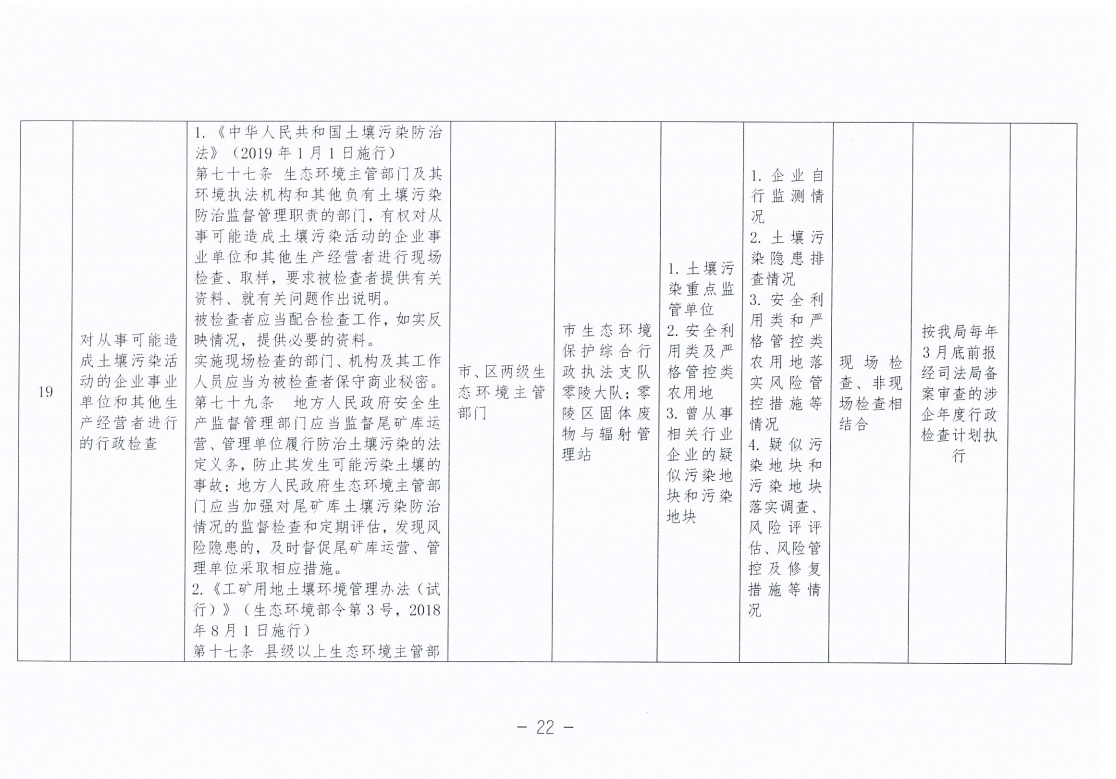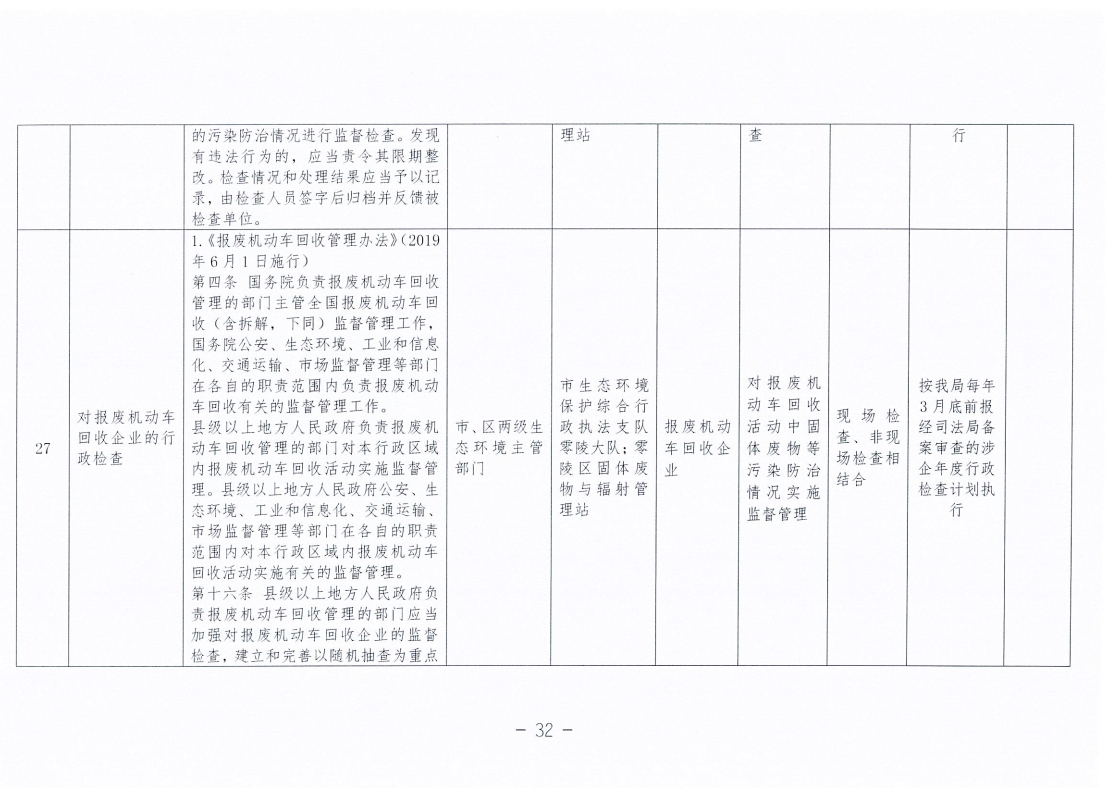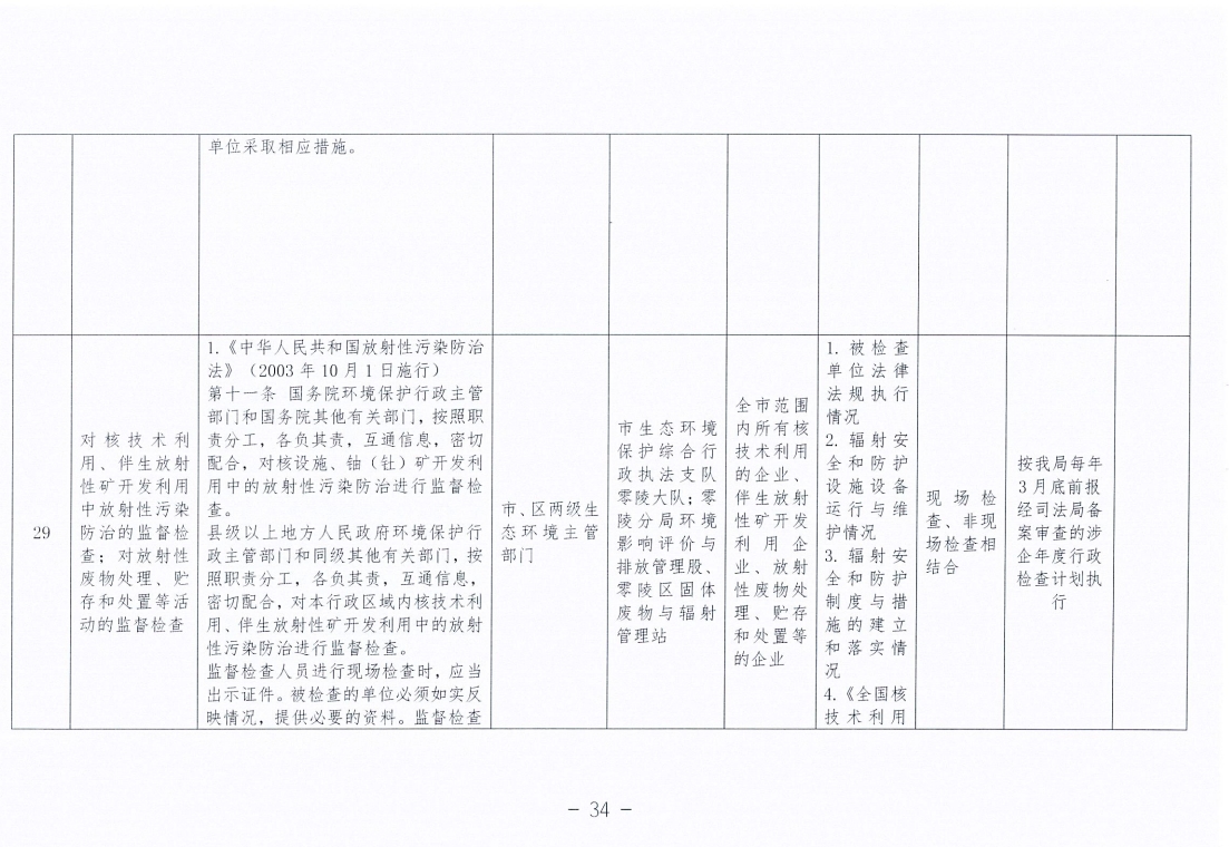 永州市生态环境局零陵分局涉企行政检查事项清单