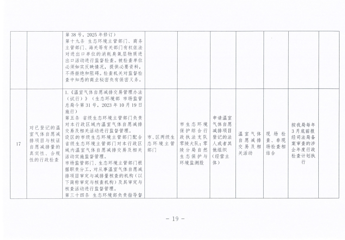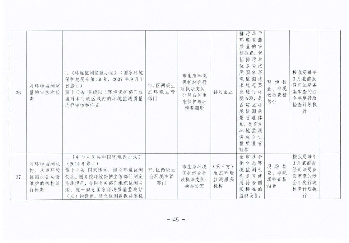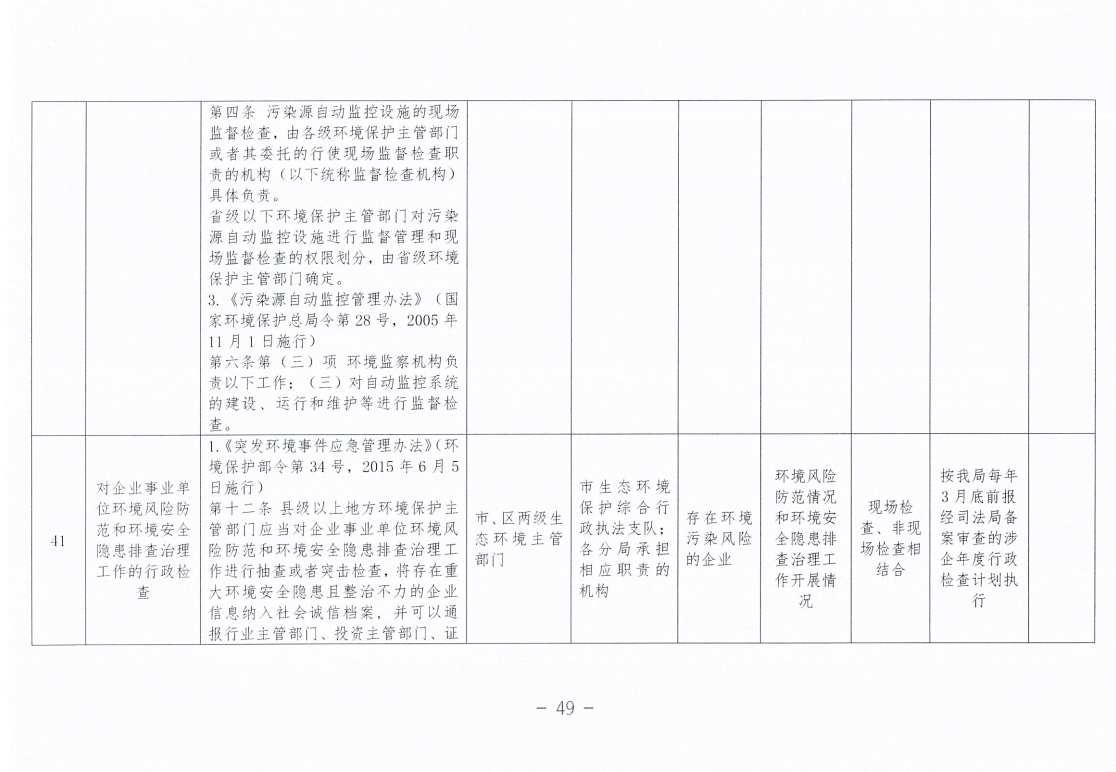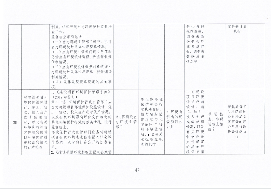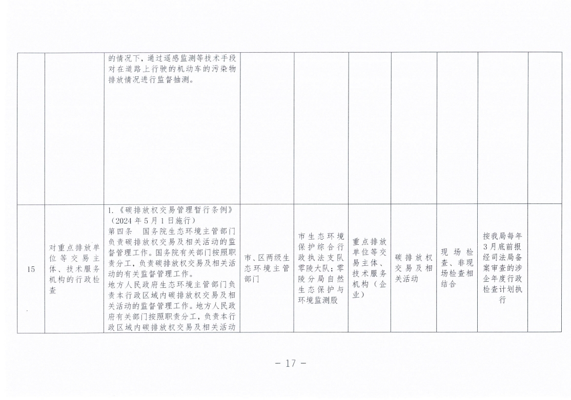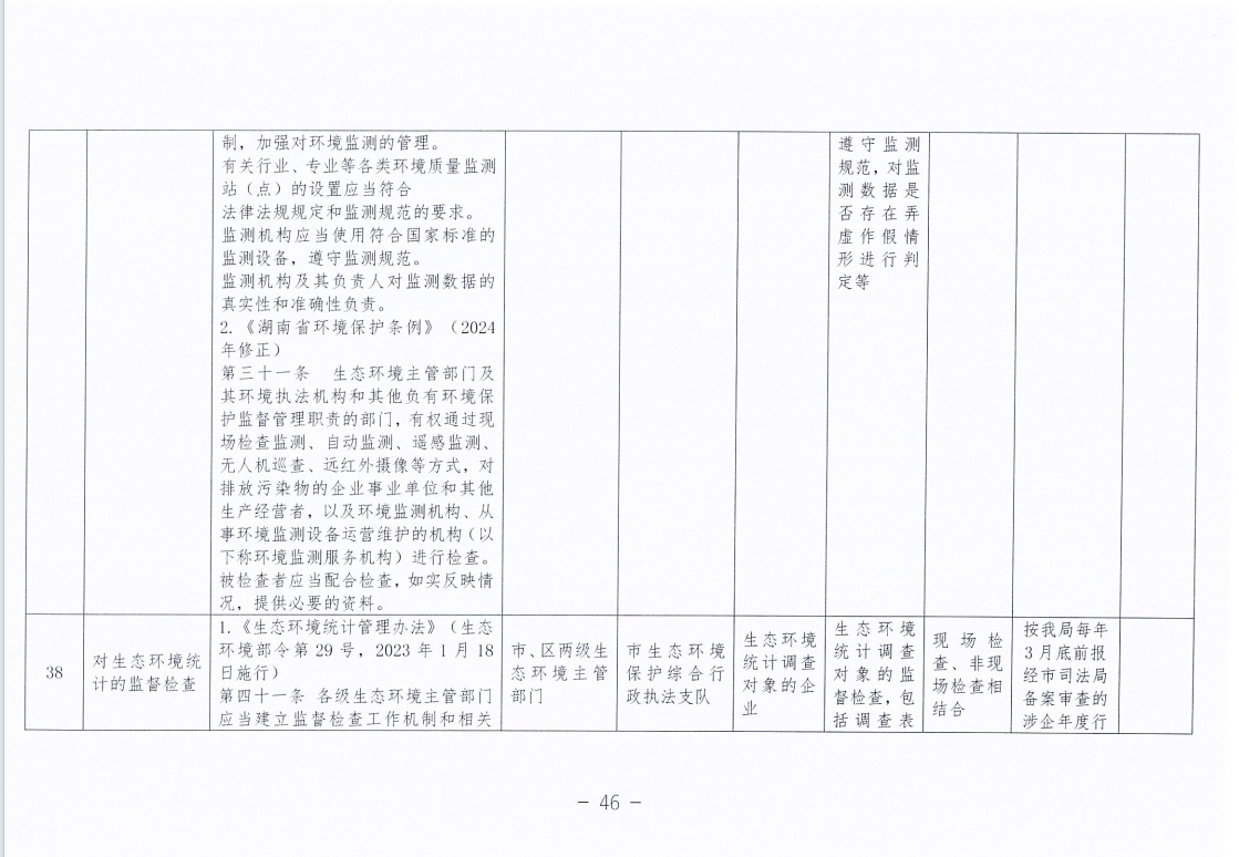 永州市生态环境局零陵分局涉企行政检查事项清单