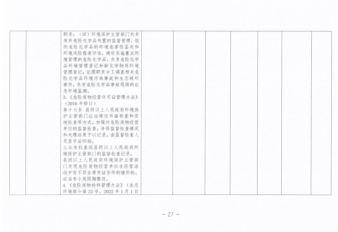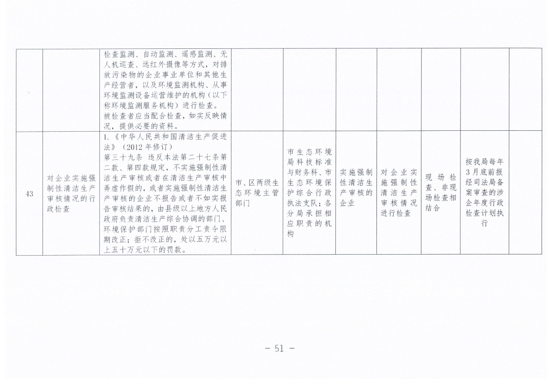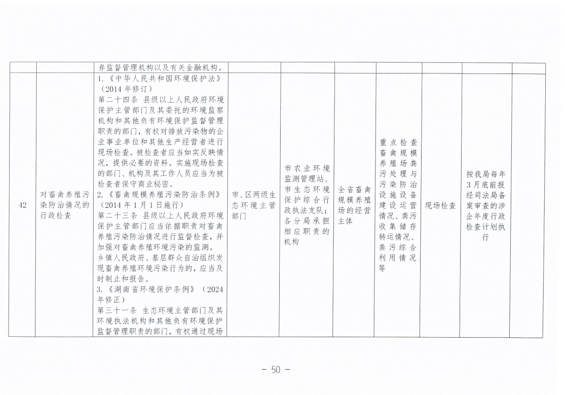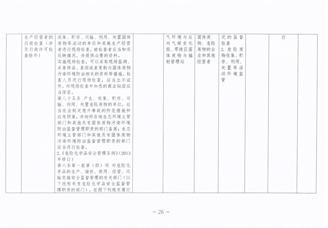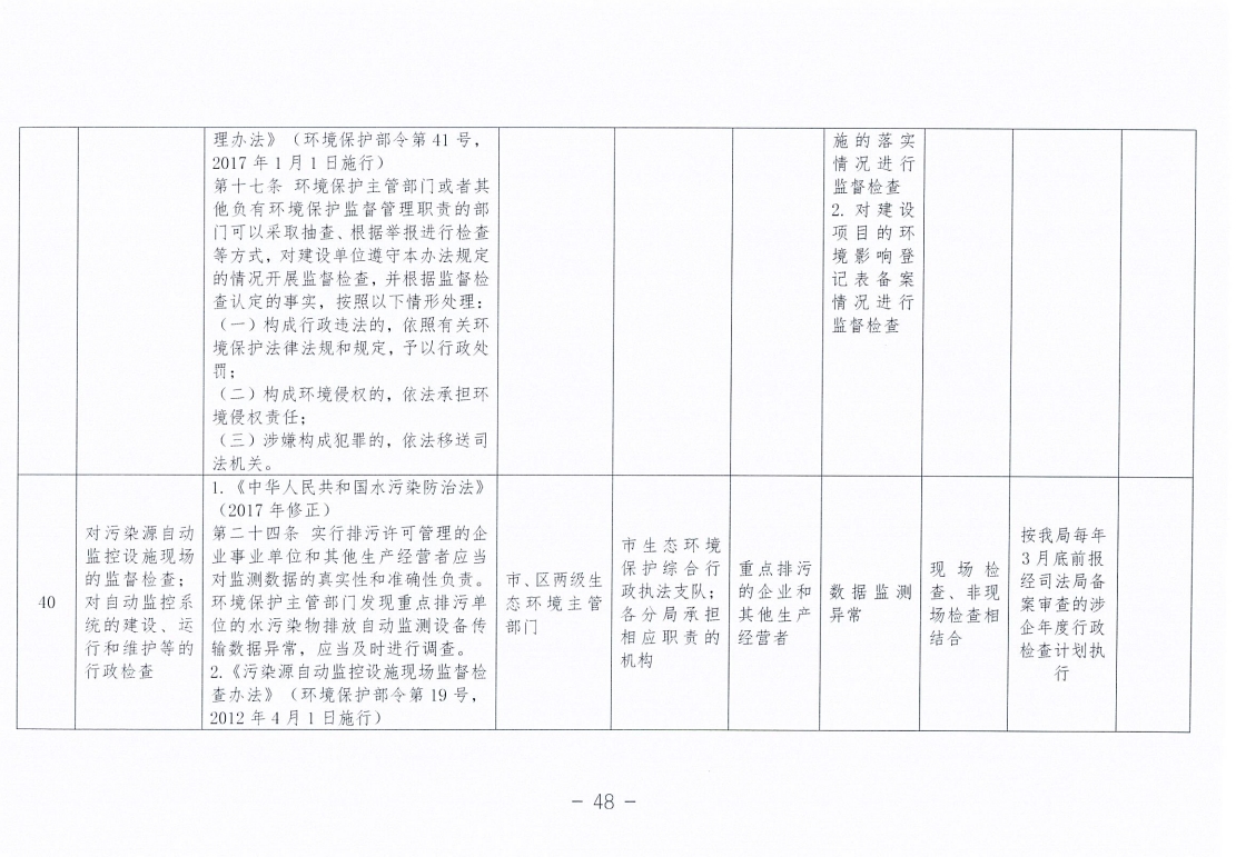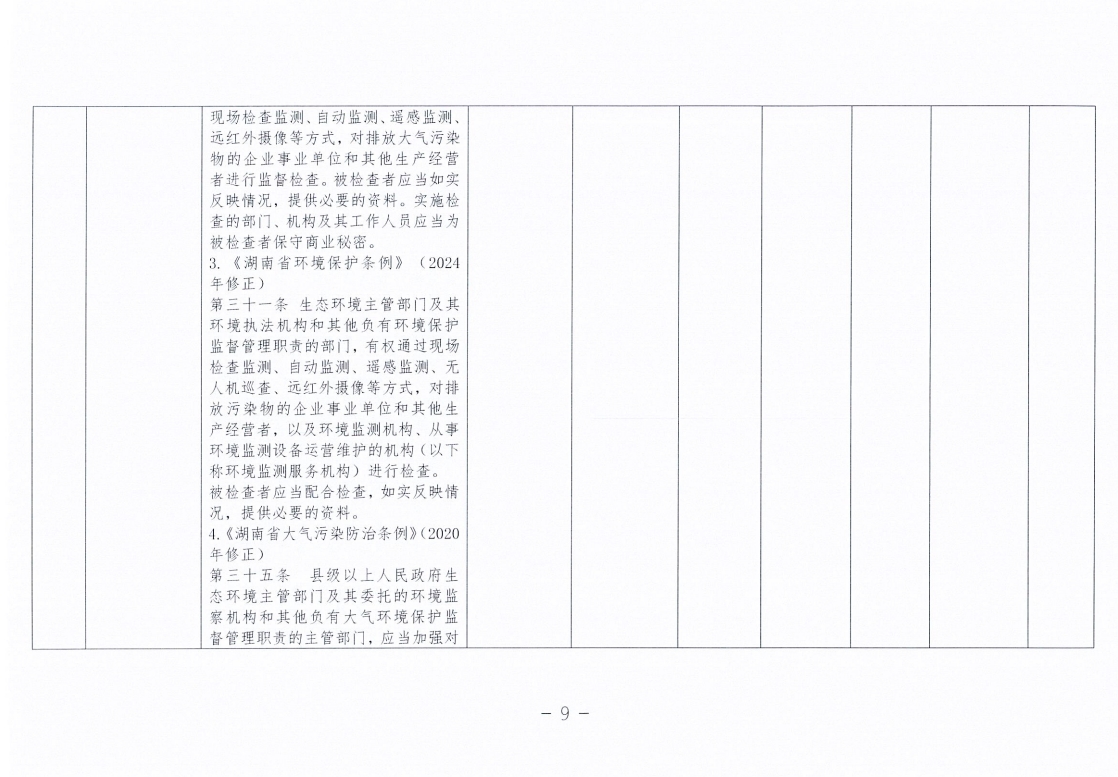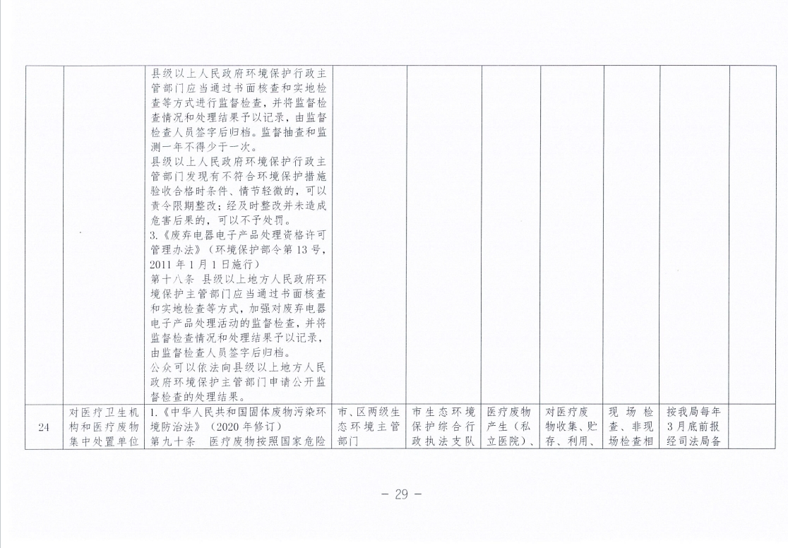 永州市生态环境局零陵分局涉企行政检查事项清单
