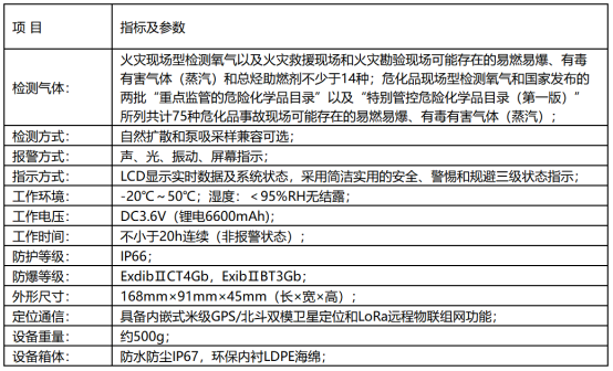 危化品现场专用型可覆盖氧气和国家发布的两批“重点监管的危险化学品目录”以及“特别管控危险化学品目录(第一版)”所列共计75种危化品事故现场可能存在的易燃易爆、有毒有害气体(蒸汽);火场专用型可覆盖氧气、可燃气以及火灾救援现场和火灾勘验现场可能存在的致死率99%以上的14种火场危险气体,同时具有助燃剂辅助检出功能,为火场勘验时纵火判定提供实用便捷检测手段;侦检仪基于缺(高)氧、IDLH、LEL的报警判决策略同步检测火场环境气氛的窒息性、毒害性、爆炸性量化风险,直观指示危害等级;采用简洁实用的安全、警惕和规避三级状态指示,并在报警时明确关联SCBA呼吸保护或立即规避撤离的战术行动;该侦检仪重量轻、体积小、易于携带,防水防尘防爆,待机时间长,工作温度范围宽,兼容泵吸和自然扩散两种采样方式,非常适用于事故现场首批应急救援人员作业安全防护和职业安全防护。