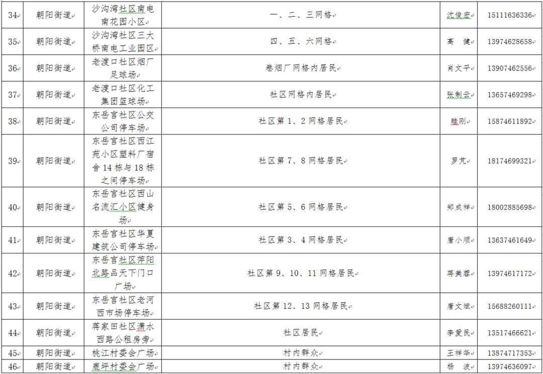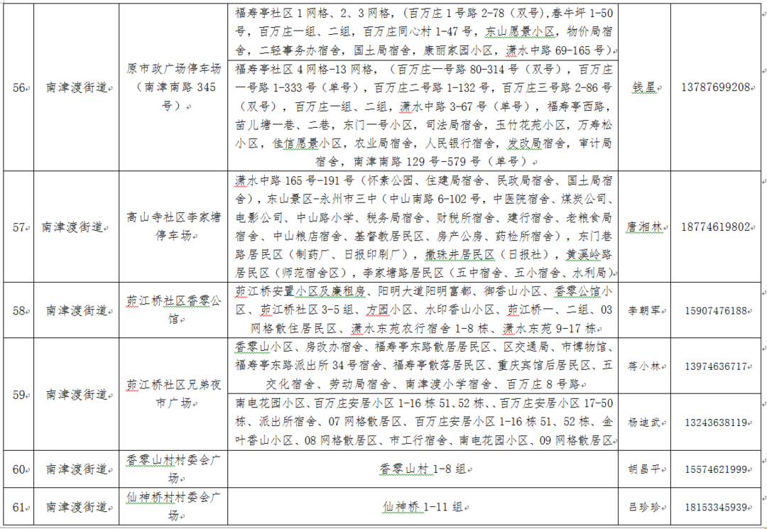三、采样地点:各街道内村、社区根据实际情况设置了采样点(详见附表),请各位居民根据村、社区工作人员通知有序前往指定的采样点,接履桥街道、石山脚街道、菱角塘镇辖区内居民以村、社区通知为准。