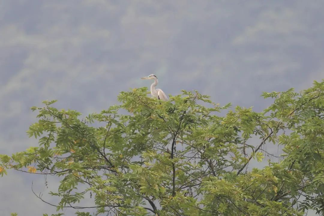 2023年10月8日,潇水湿地惊现苍鹭的身影。