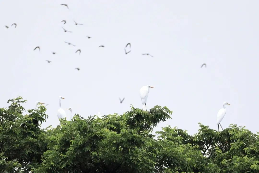 2022年10月22,成群白鹭自由翱翔潇水湿地,白鹭被称为“生态鸟”它已是潇水湿地的常客,常年可见。