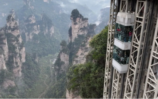 清明假期,游客乘百龙天梯在袁家界景区游览
