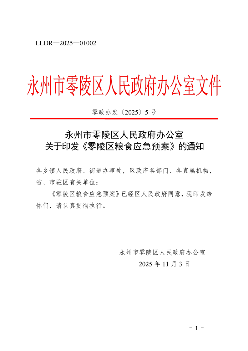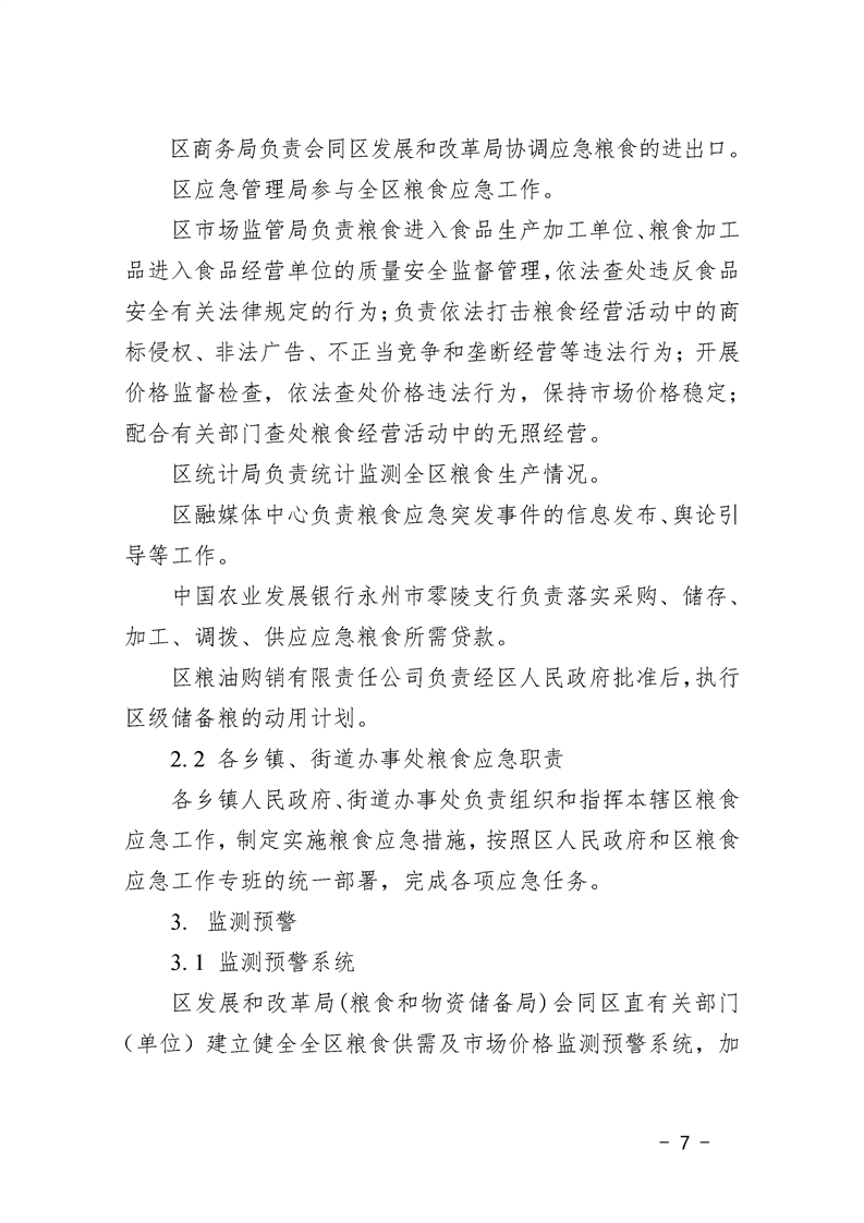 永州市零陵区人民政府办公室关于印发《零陵区粮食应急预案》的通知