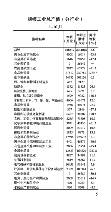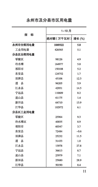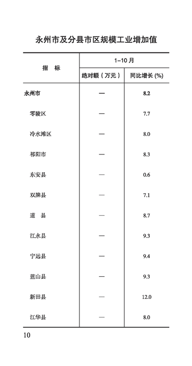 2025年零陵统计月报1-10月