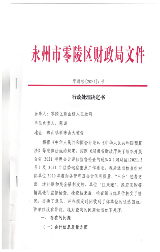 根据《中华人民共和国会计法》、《财政违法行为处罚处分条例》有关规定,我单位做出如下处理:
