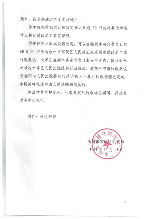 (五)对于上述第(五)项问题,责成单位立即整改,采购政府采购限额标准以下的货物、服务和工程,除涉密采
