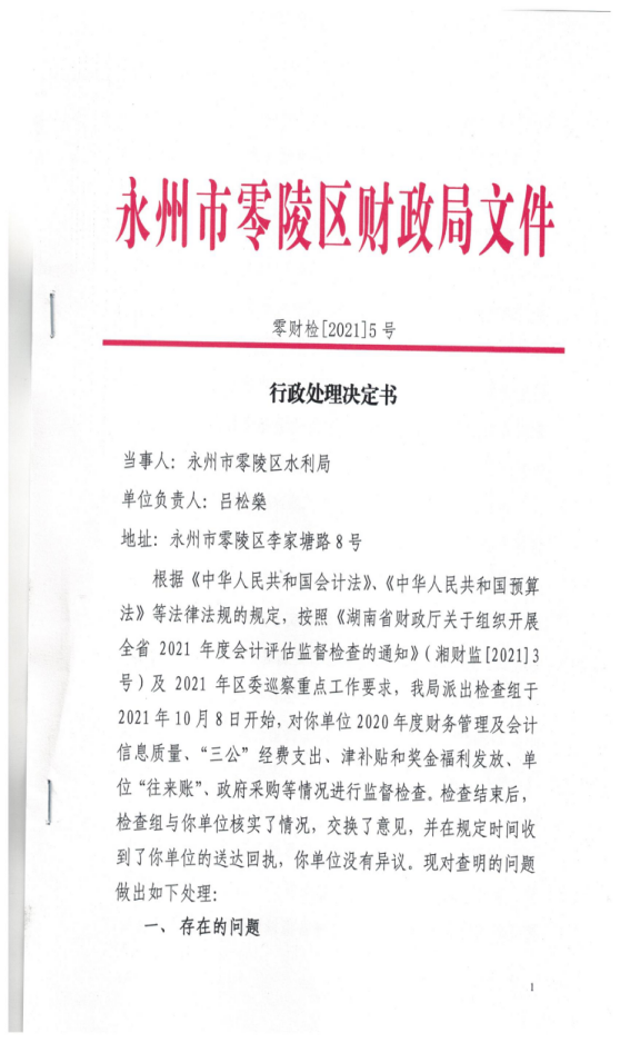 根据《中华人民共和国会计法》、《财政违法行为处罚处分条例》有关规定,我单位做出如下处理: