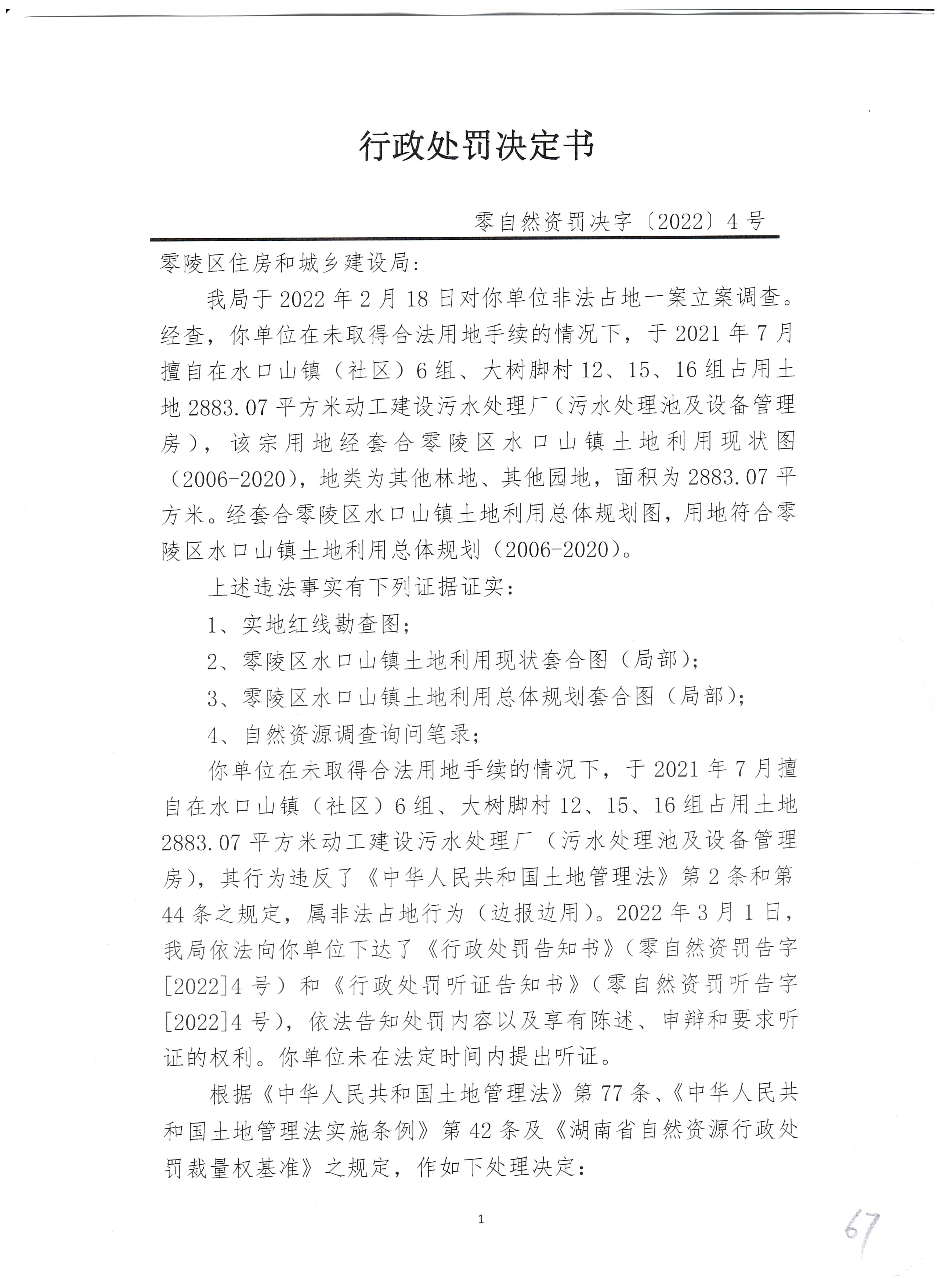 行政处罚决定书(零陵区住房和城乡建设局)零自然资罚字〔2022〕04号