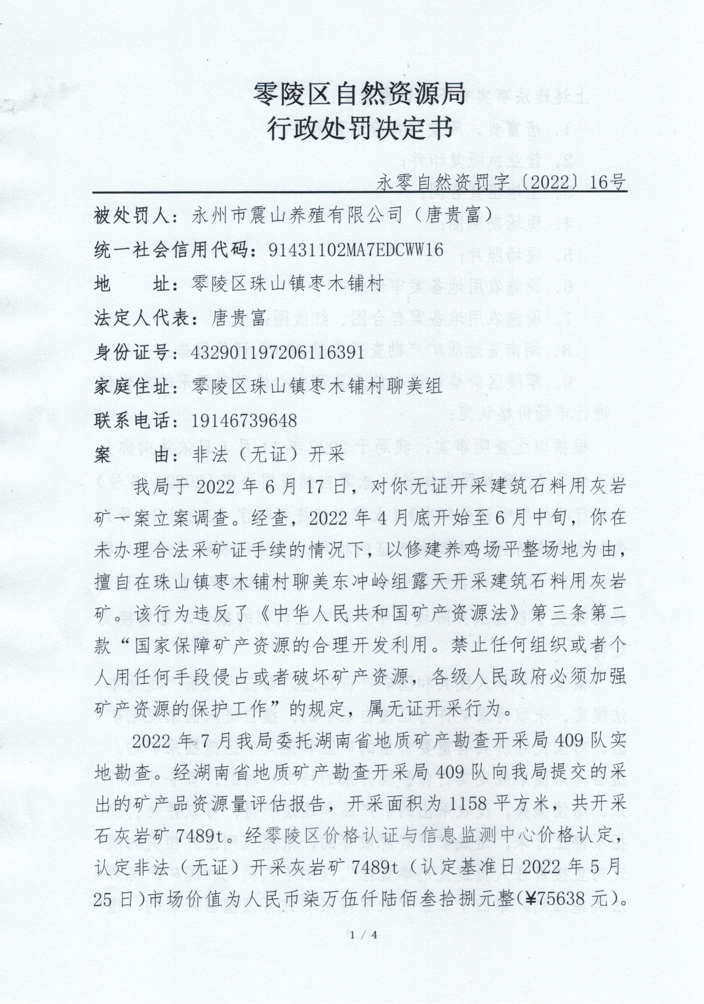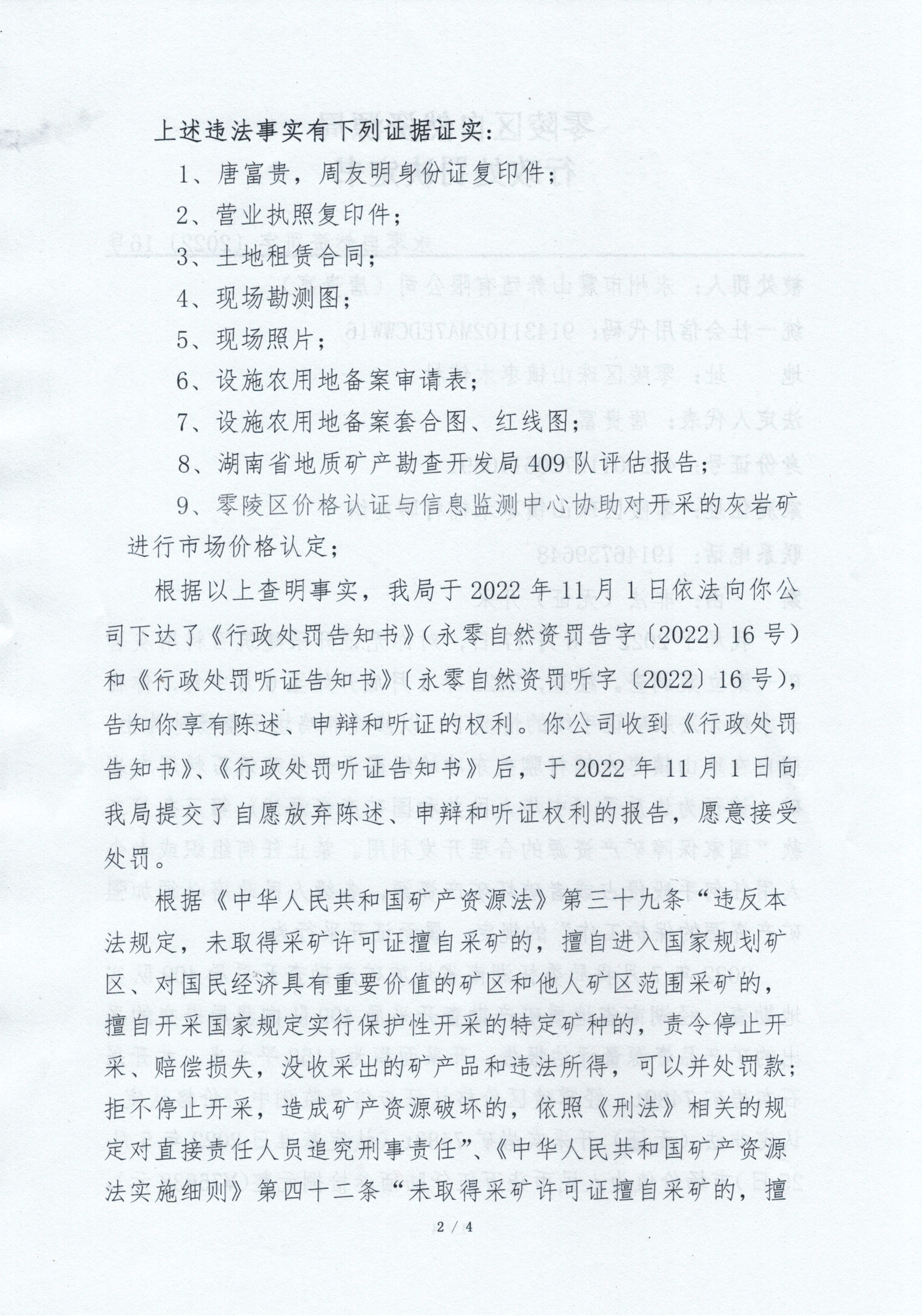行政处罚决定书(唐贵富)永零自然资罚字〔2022〕16号