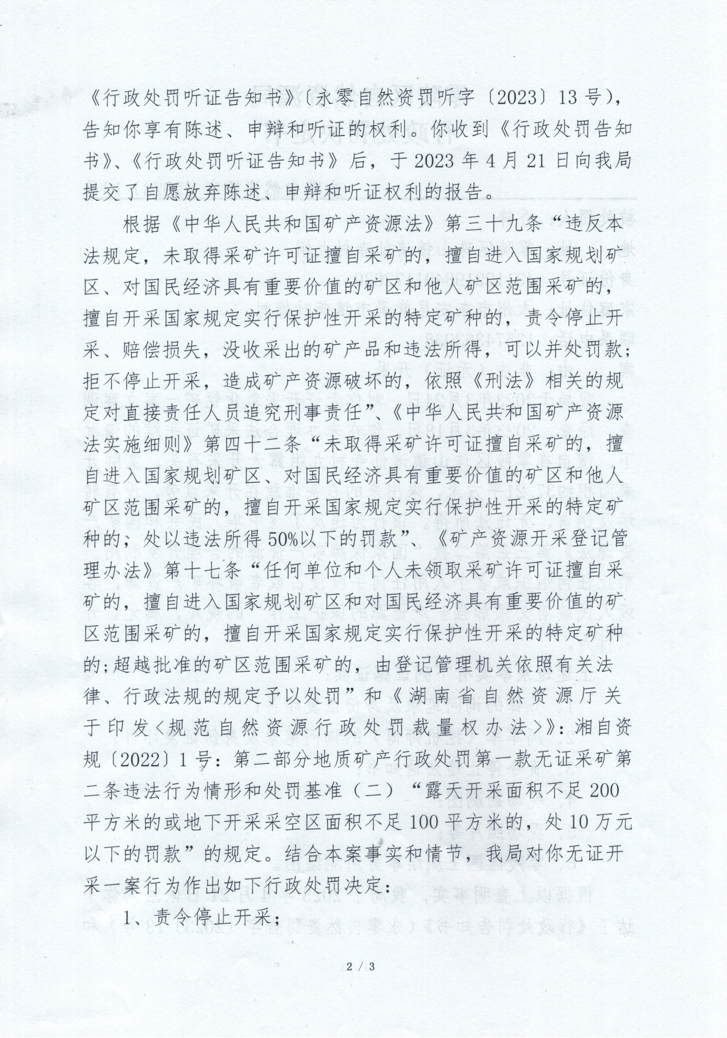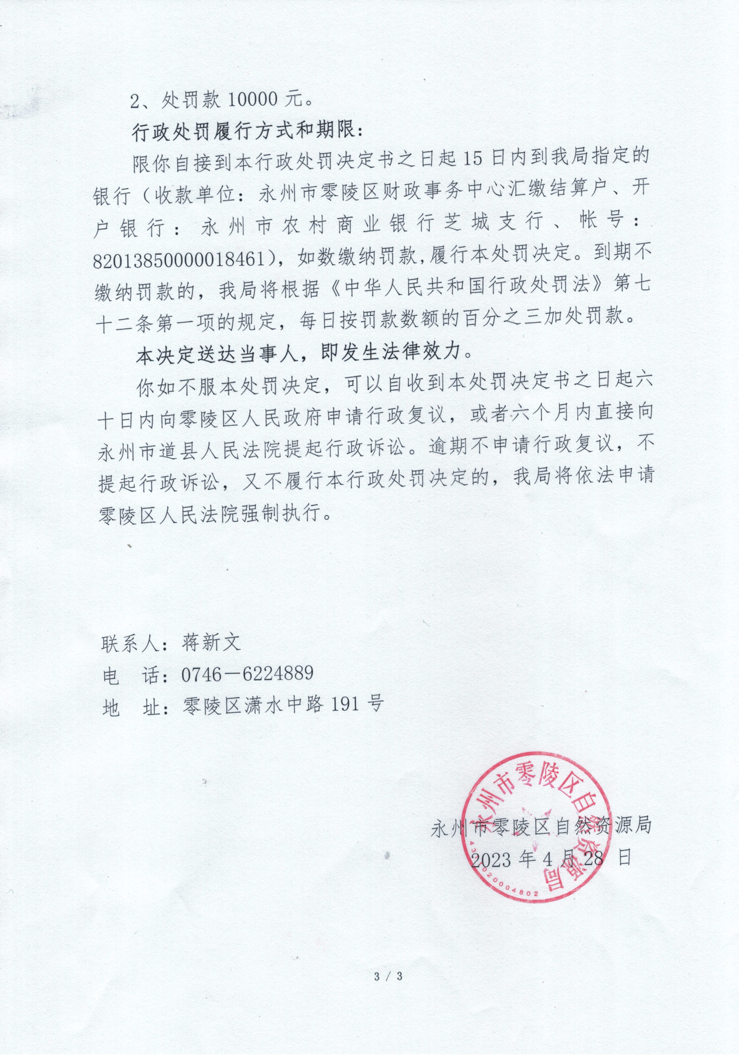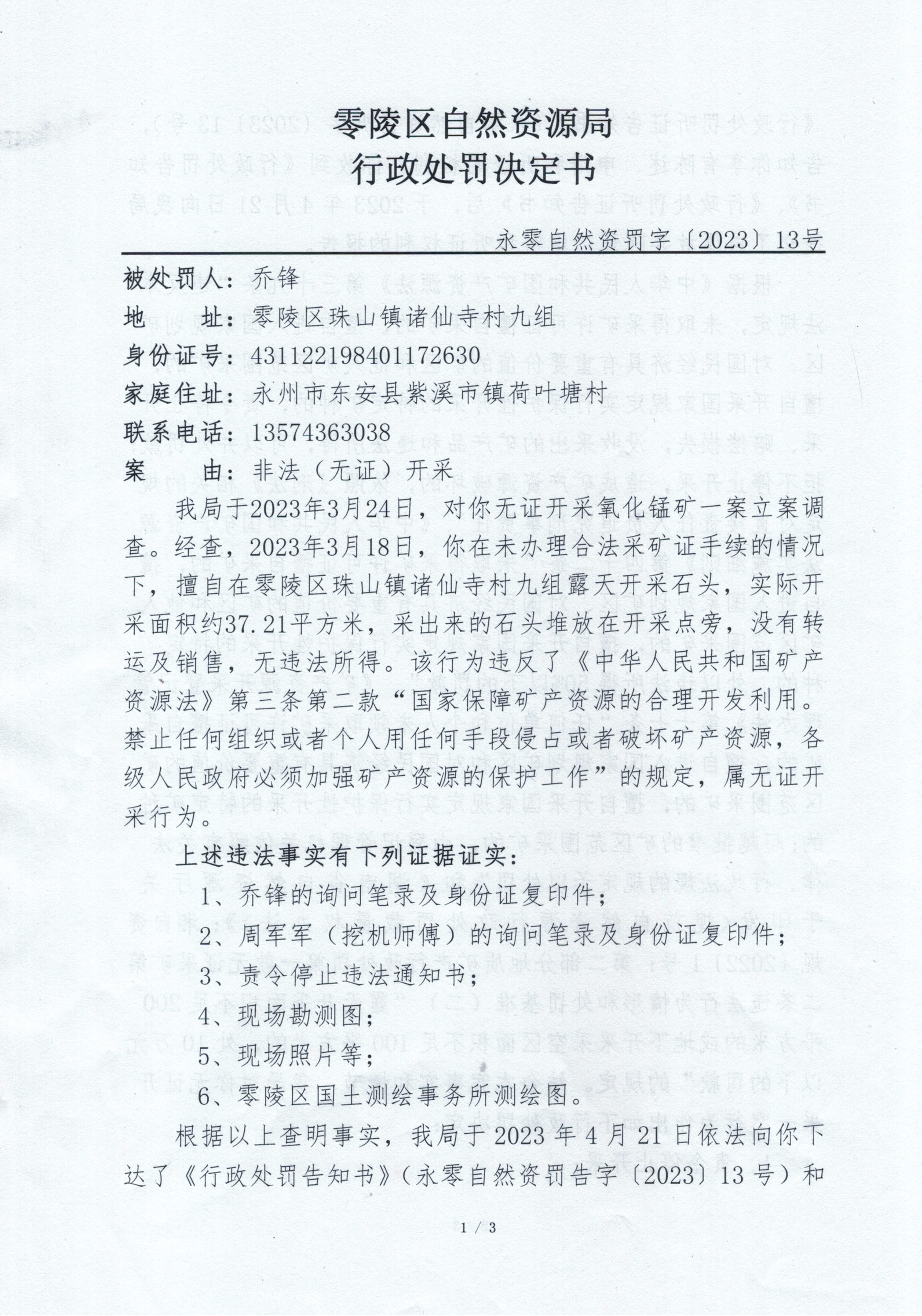 行政处罚决定书(乔锋)永零自然资罚字〔2023〕13号