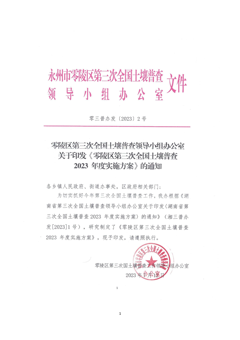 关于印发《零陵区第三次全国土壤普查实施方案》的通知