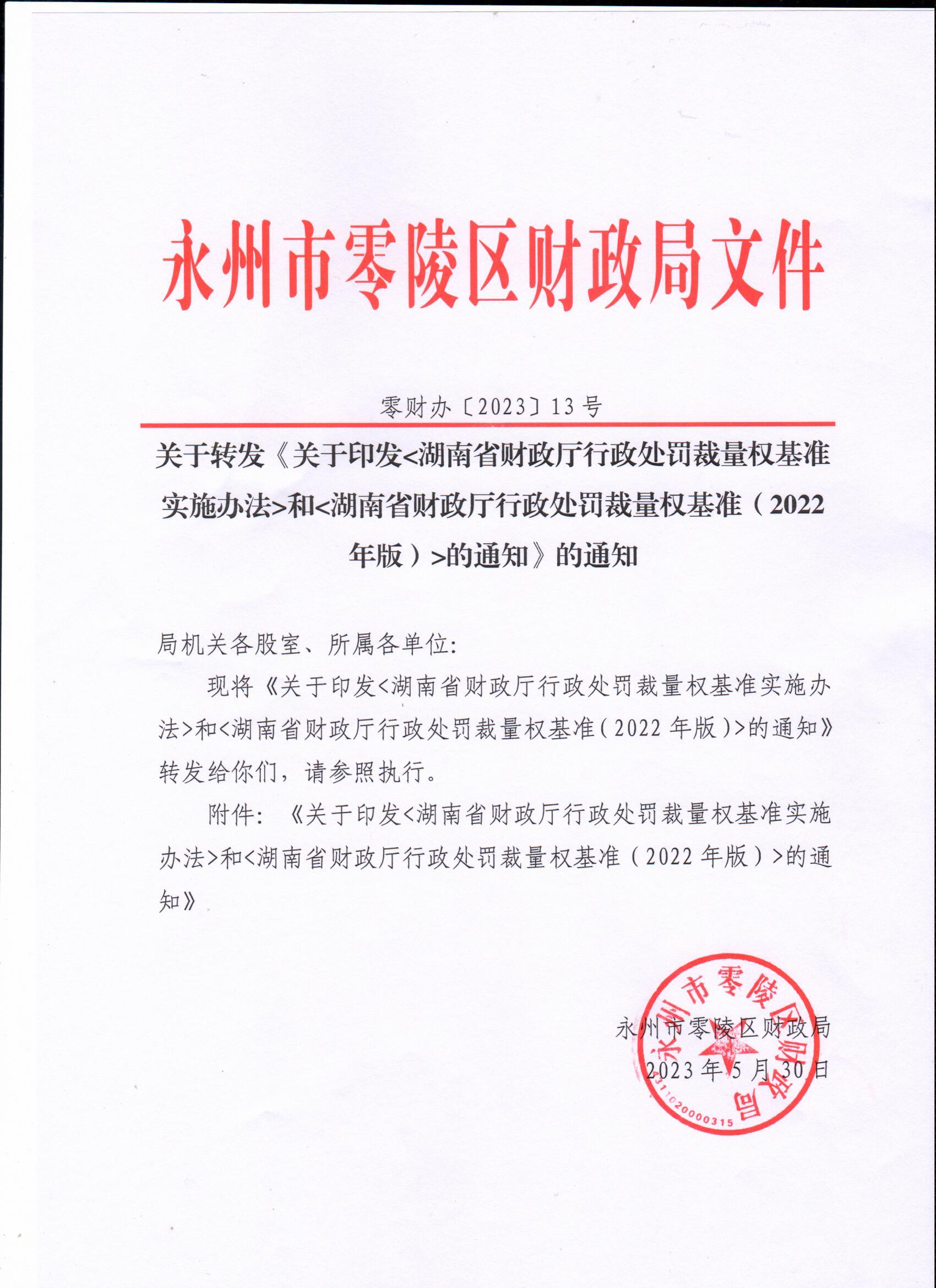 关于转发《关于印发<湖南省财政厅行政处罚裁量权基准实施办法>和<湖南省财政厅行政处罚裁量权基准(2022年版>的通知》的通知