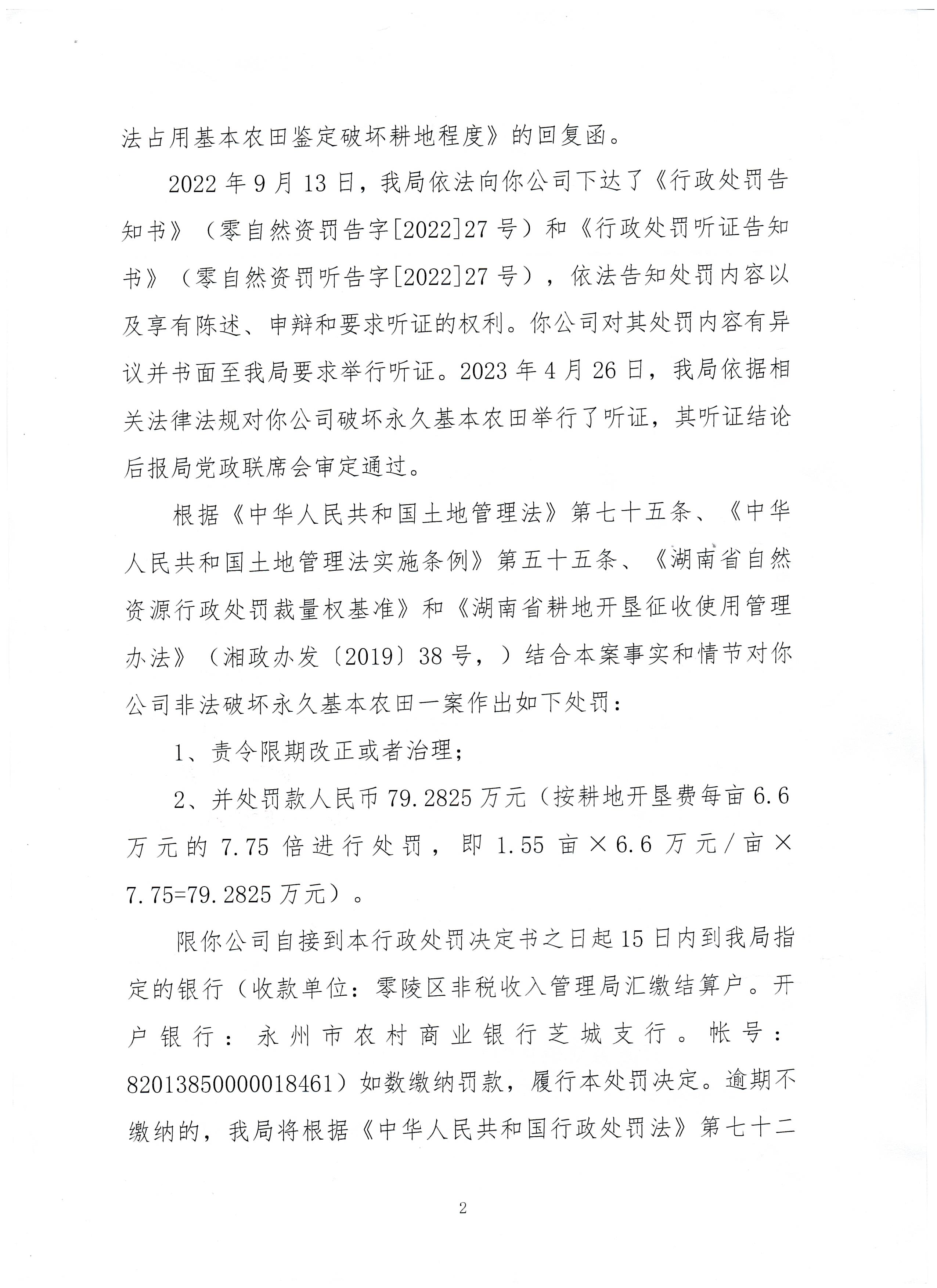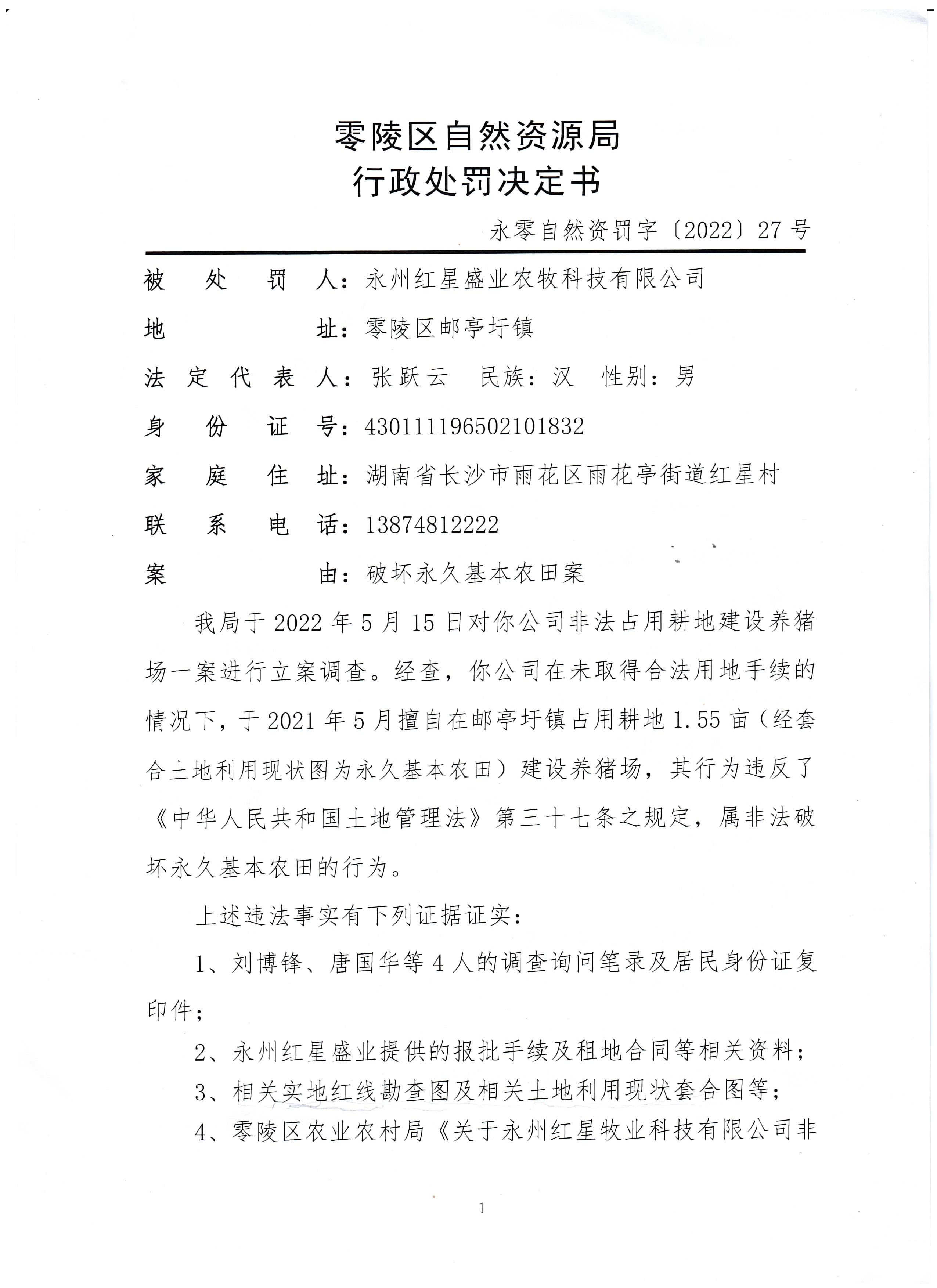 行政处罚决定书(永州红星盛业农牧科技有限公司)永零自然资罚字〔2022〕27号