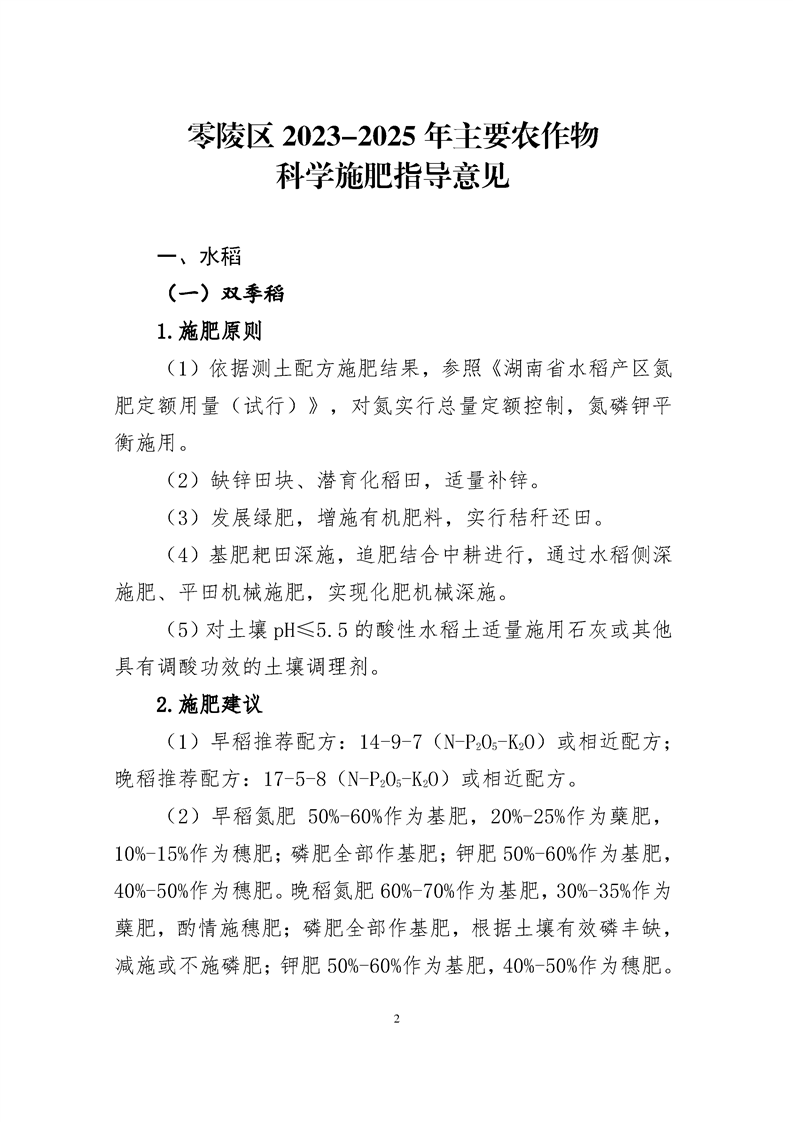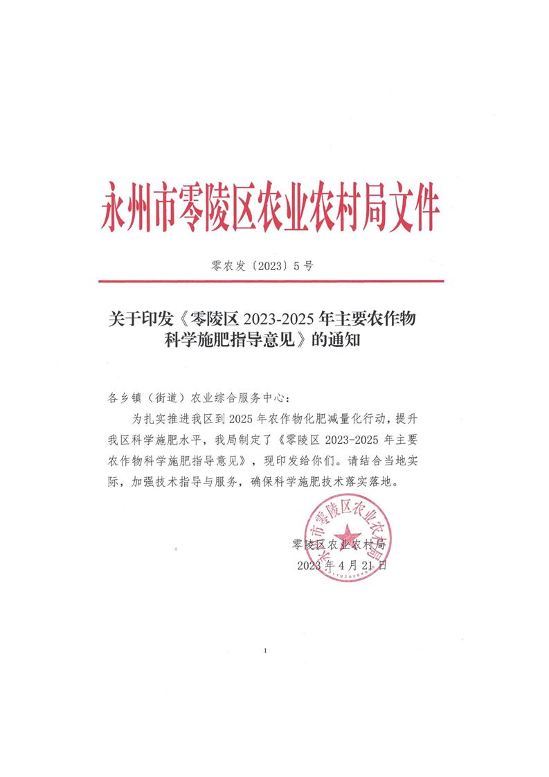 关于印发《零陵区2023—2025年主要农作物科学施肥指导意见》的通知