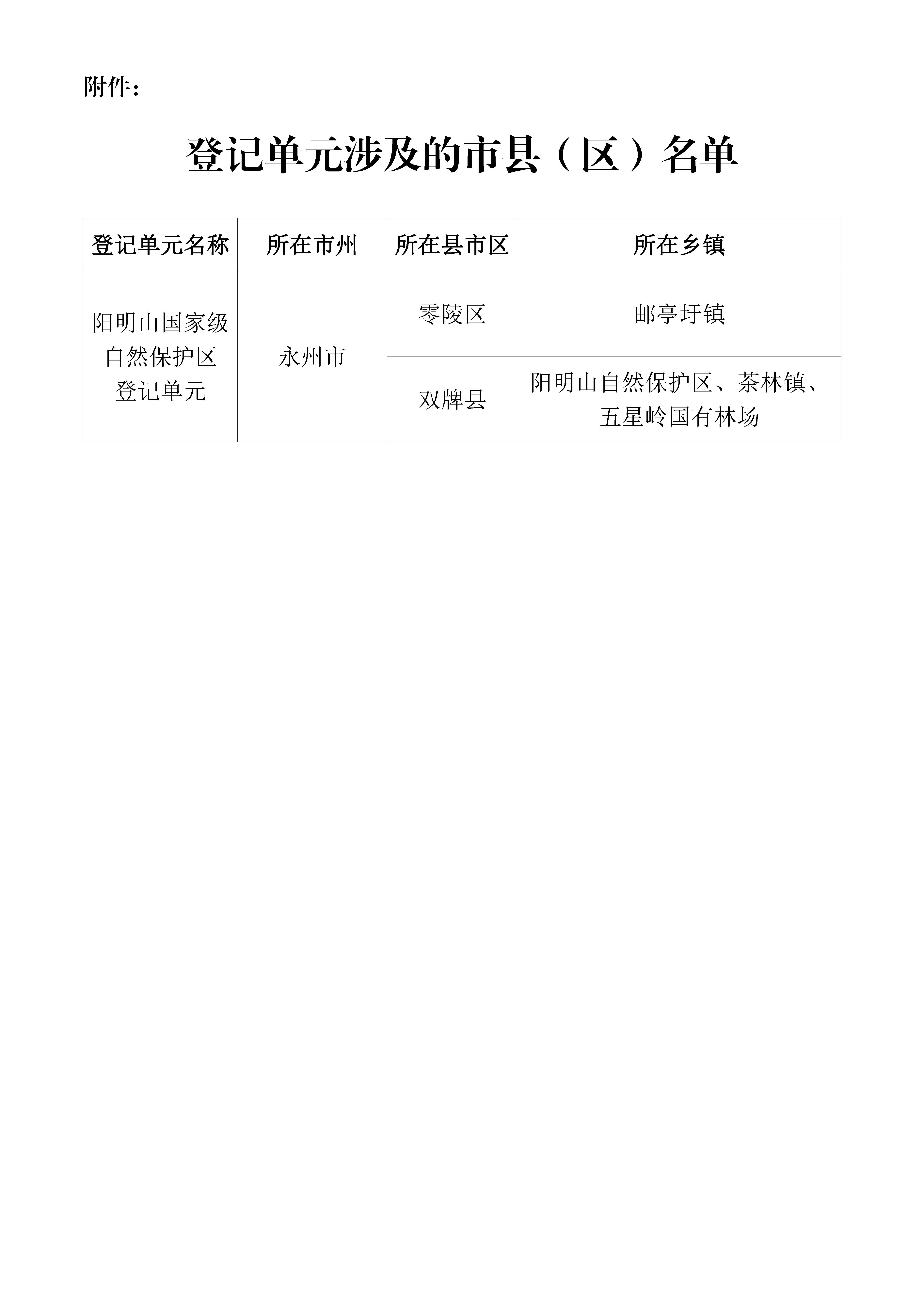 湖南省自然资源厅关于开展阳明山国家级自然保护区自然资源确权登记的通告