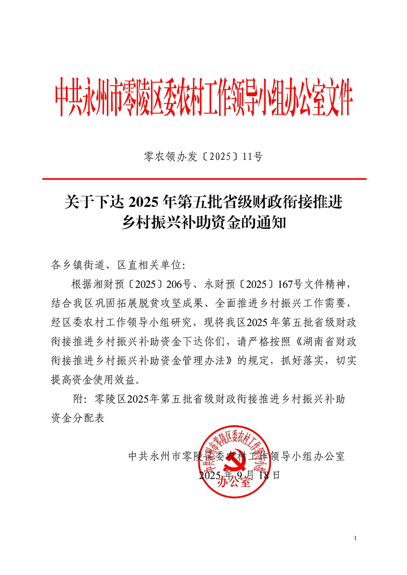关于下达 2025 年第五批省级财政衔接推进乡村振兴补助资金的通知