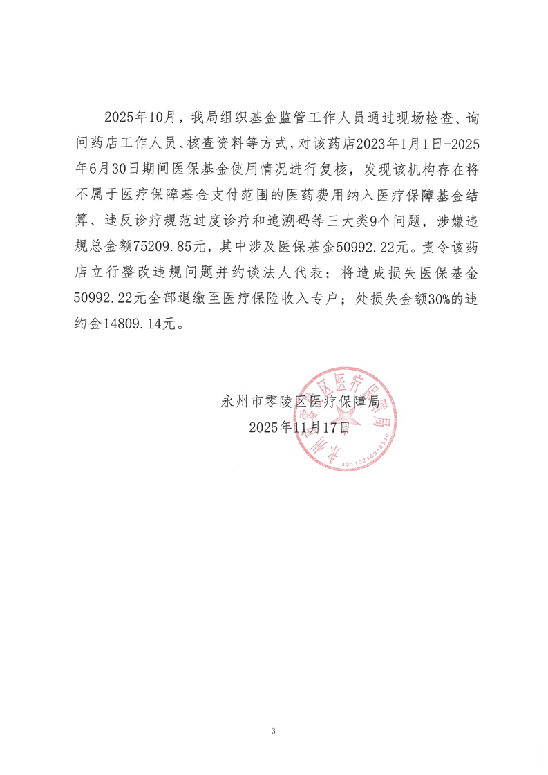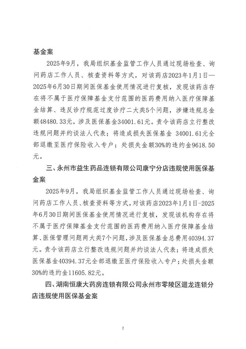 关于零陵区萍洲路楚济堂大药房等4起违法违规使用医保基金典型案例的通报(第二批)