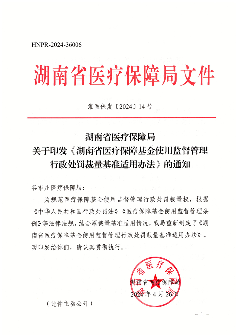 零陵区医疗保障局关于转发《湖南省医疗保障局关于印发〈湖南省医疗保障基金使用监督管理行政处罚裁量基准适用办法〉的通知》通知