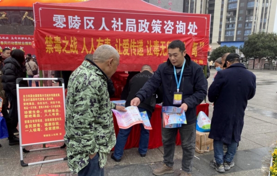 2月10日,零陵区人力资源和社会保障局以“春风送岗促就业,禁毒宣传护平安”为主题,在局机关举办“春风行动”专场招聘会,通过现场讲解、资料发放、案例警示等多种形式,向广大求职者普及识毒、防毒、拒毒相关知识,在为群众送上就业机遇的同时,用暖心服务守护群众平安就业、幸福生活。