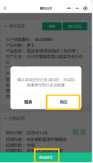 5.收购索证与重新出证:收购商先按步骤1、2访问“智慧湘农”小程序和使用注册,收购产品时,使用“智慧湘农”小程序“扫码索证”菜单“扫一扫”功能,扫描电子合格证二维码,确认添加入库(可选择录入购买数量),自动获取该产品上游供应链路上全部主体资质、检测报告等关键数据,自动完成索证索票。