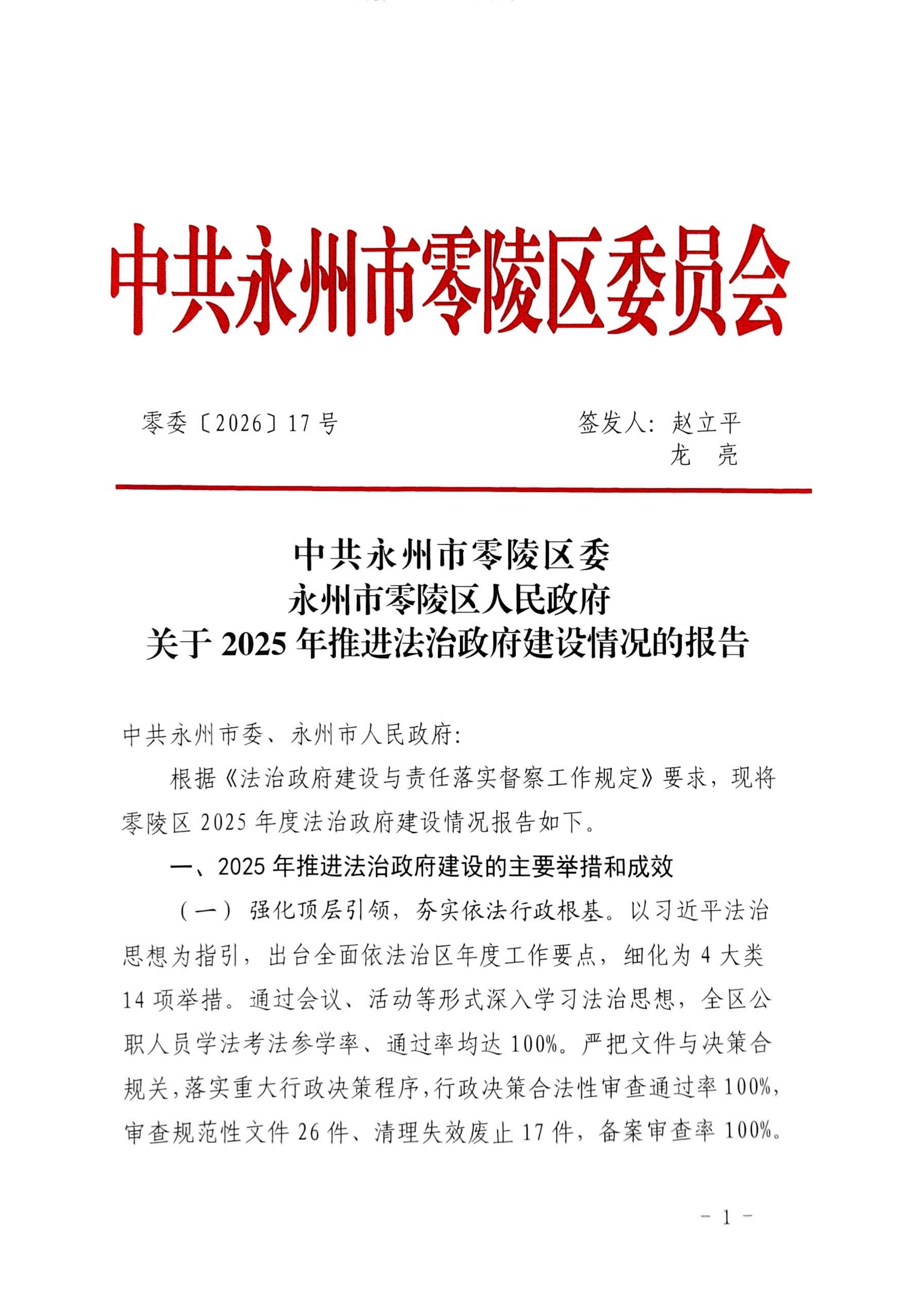 中共永州市零陵区委永州市零陵区人民政府关于2025年推进法治政府建设情况的报告