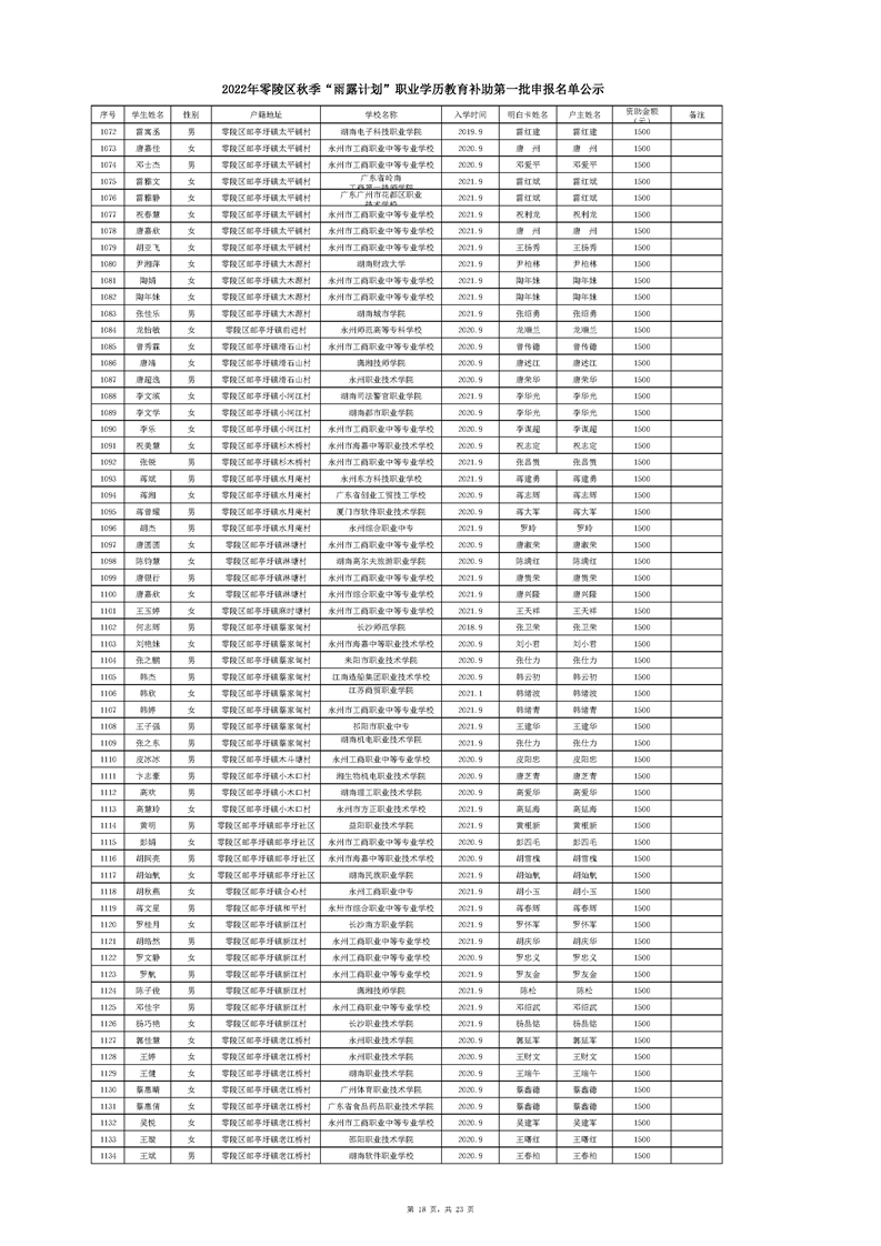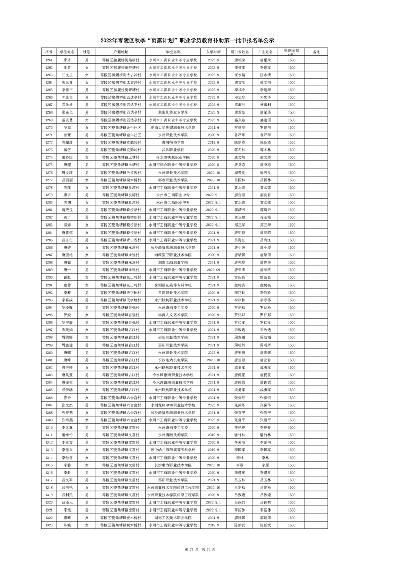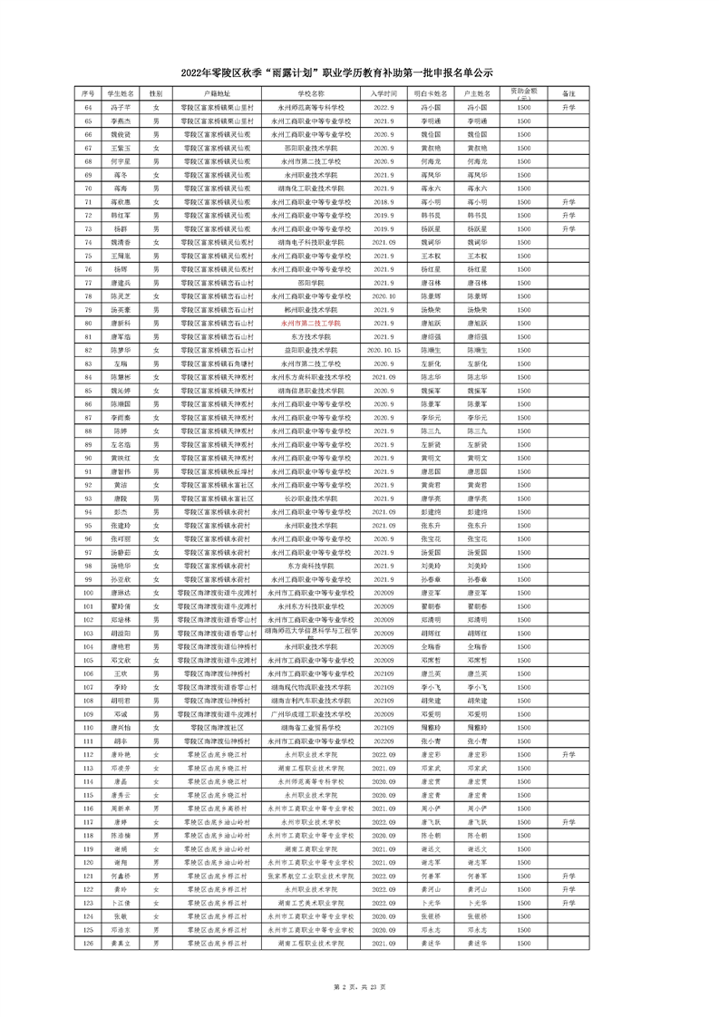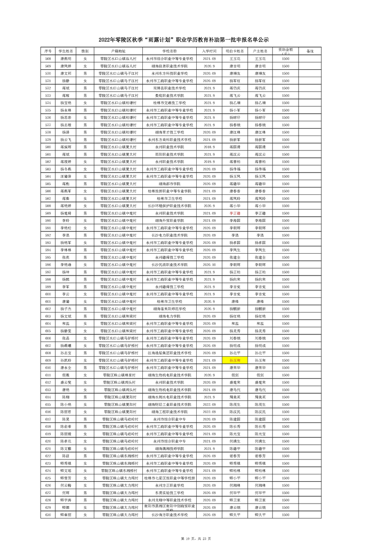 2022年零陵区秋季“雨露计划”职业学历教育补助第一批申报名单公示