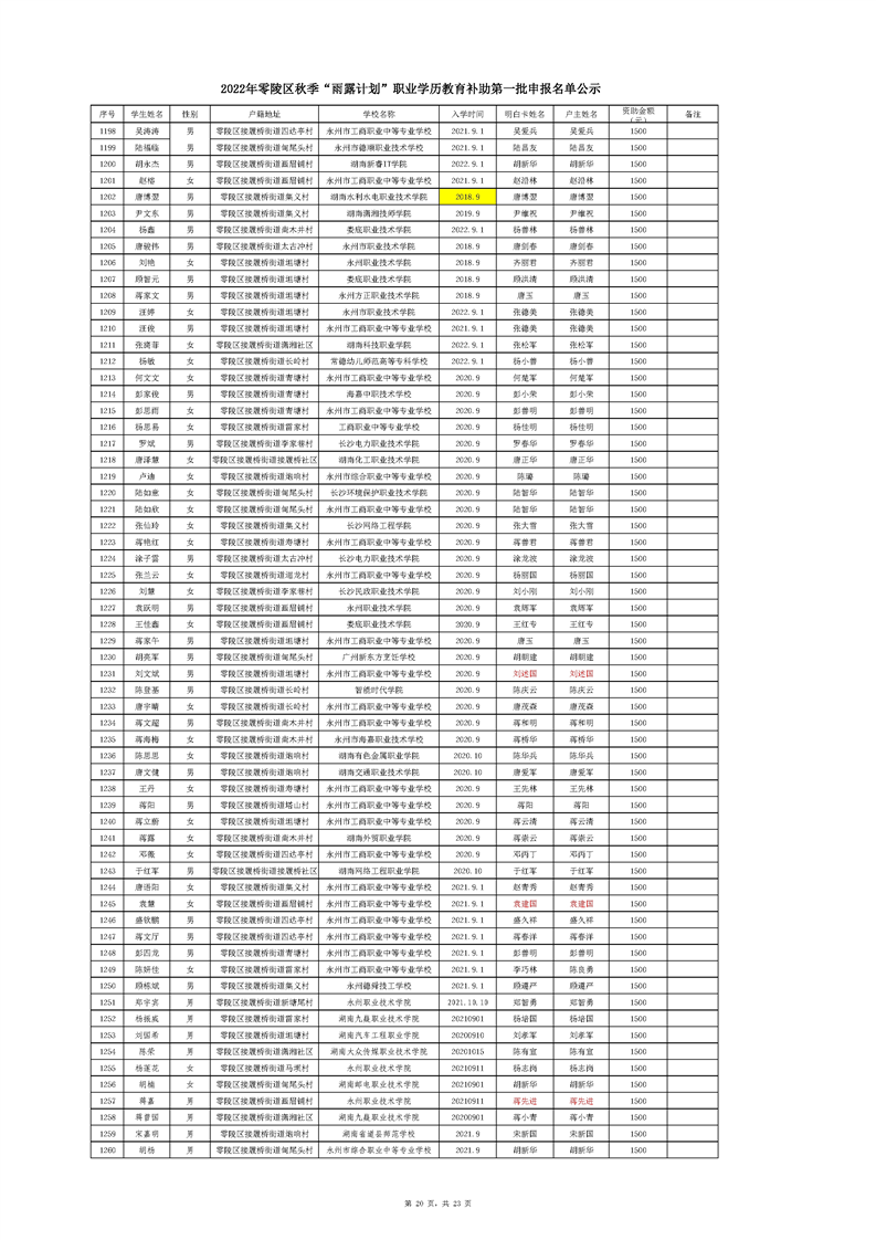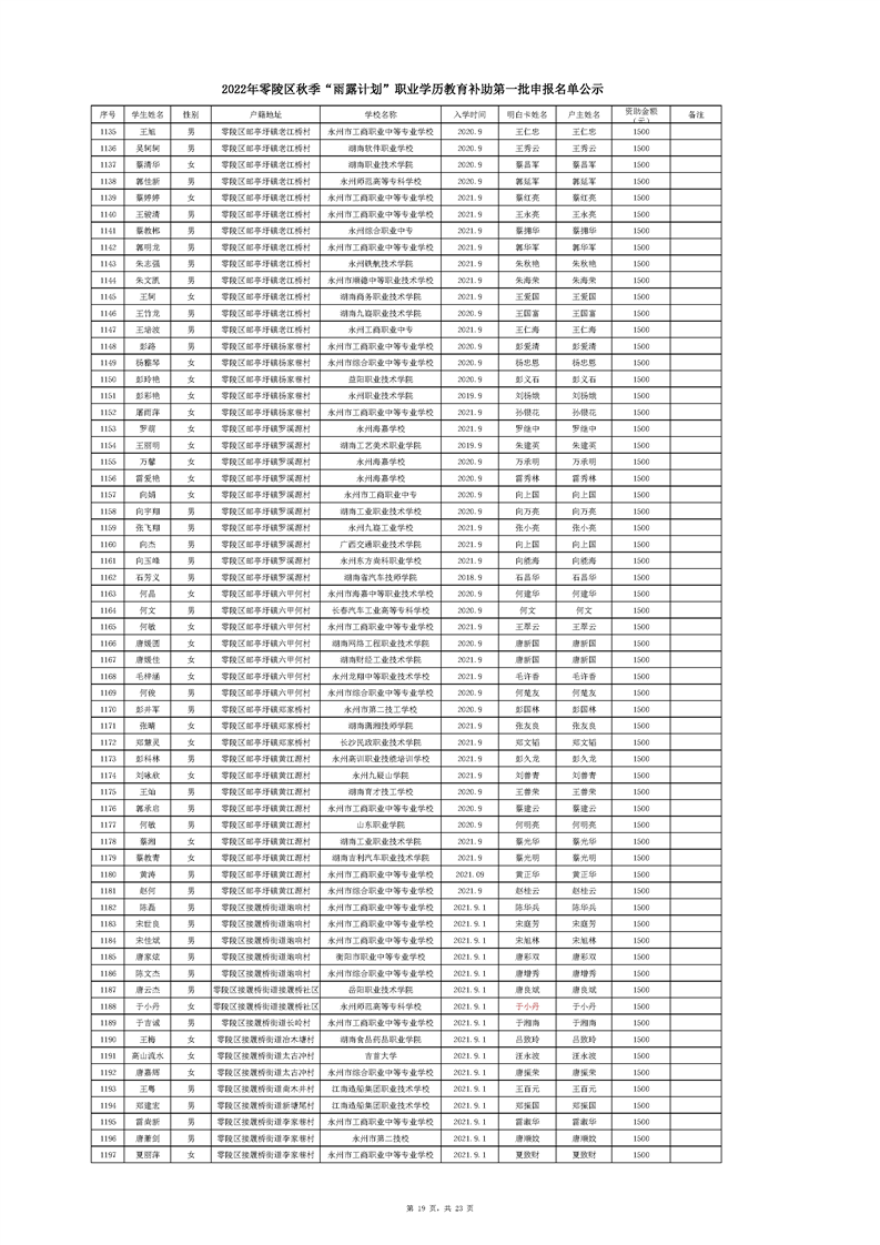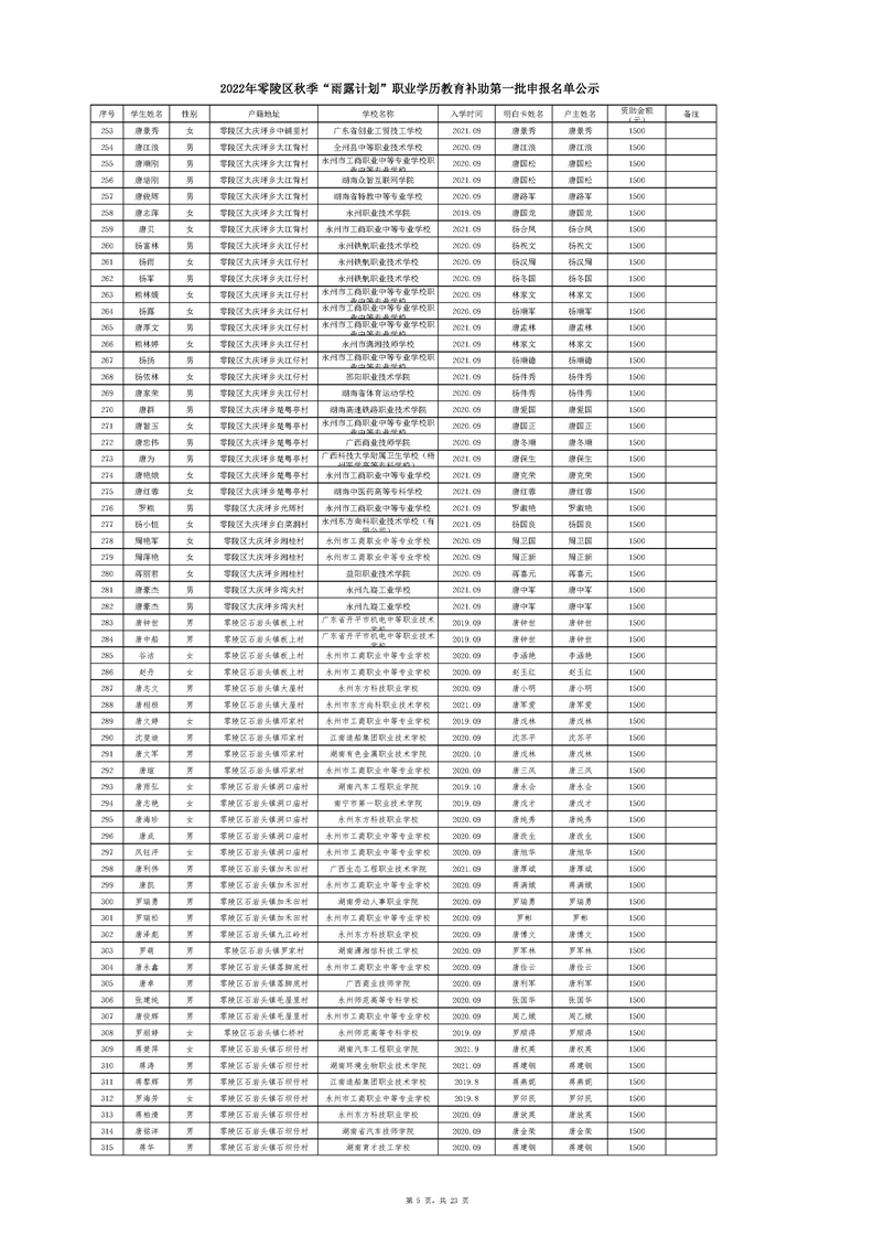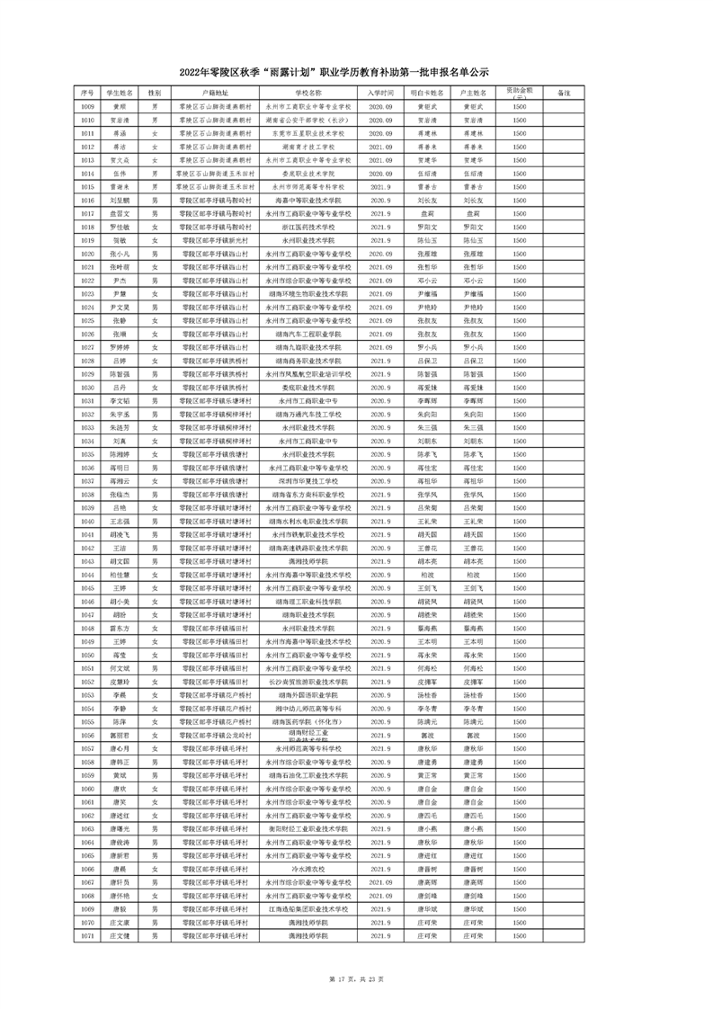 2022年零陵区秋季“雨露计划”职业学历教育补助第一批申报名单公示