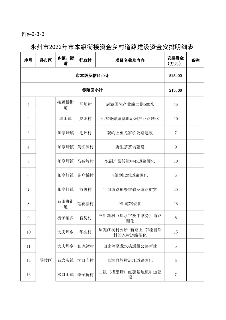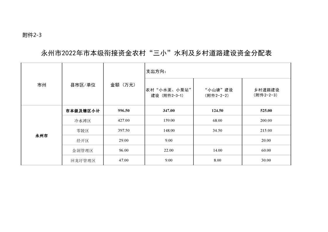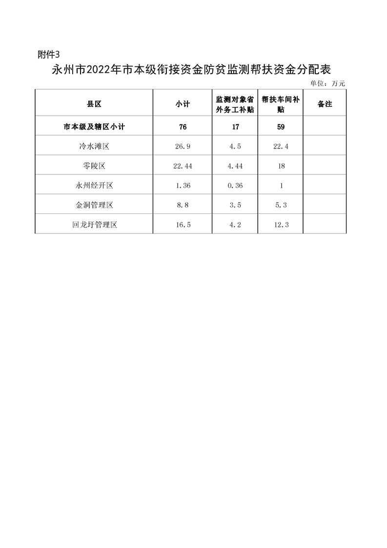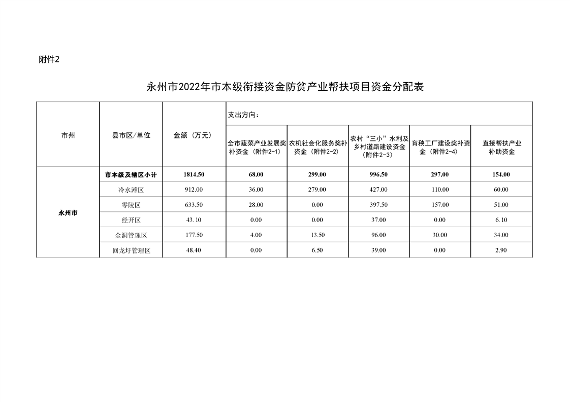 永州市财政局关于下达2022年市本级财政衔接推进乡村振兴补助资金的通知