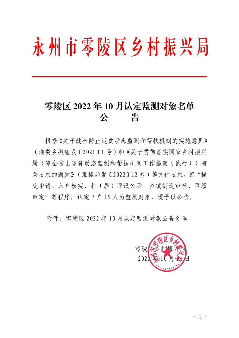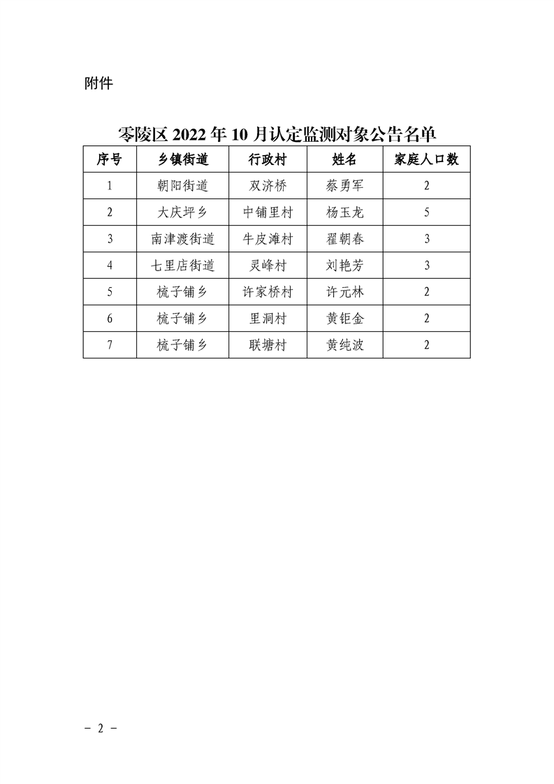 零陵区2022年10月认定监测对象名单公告