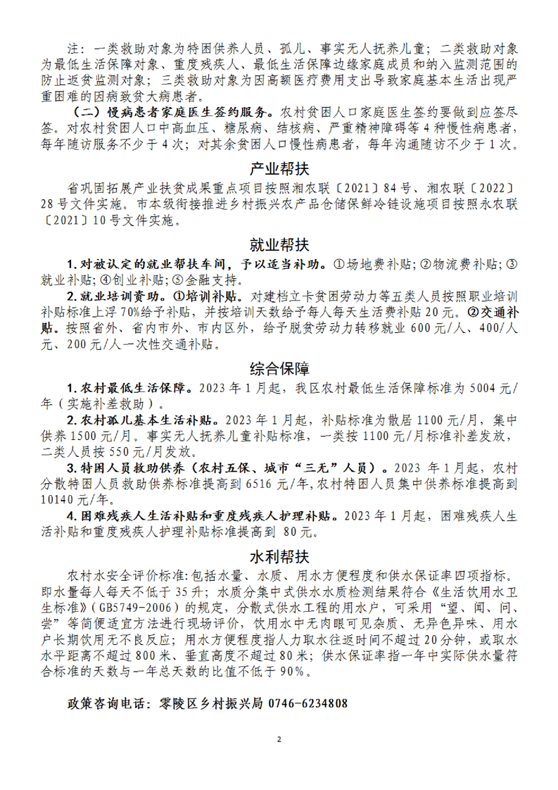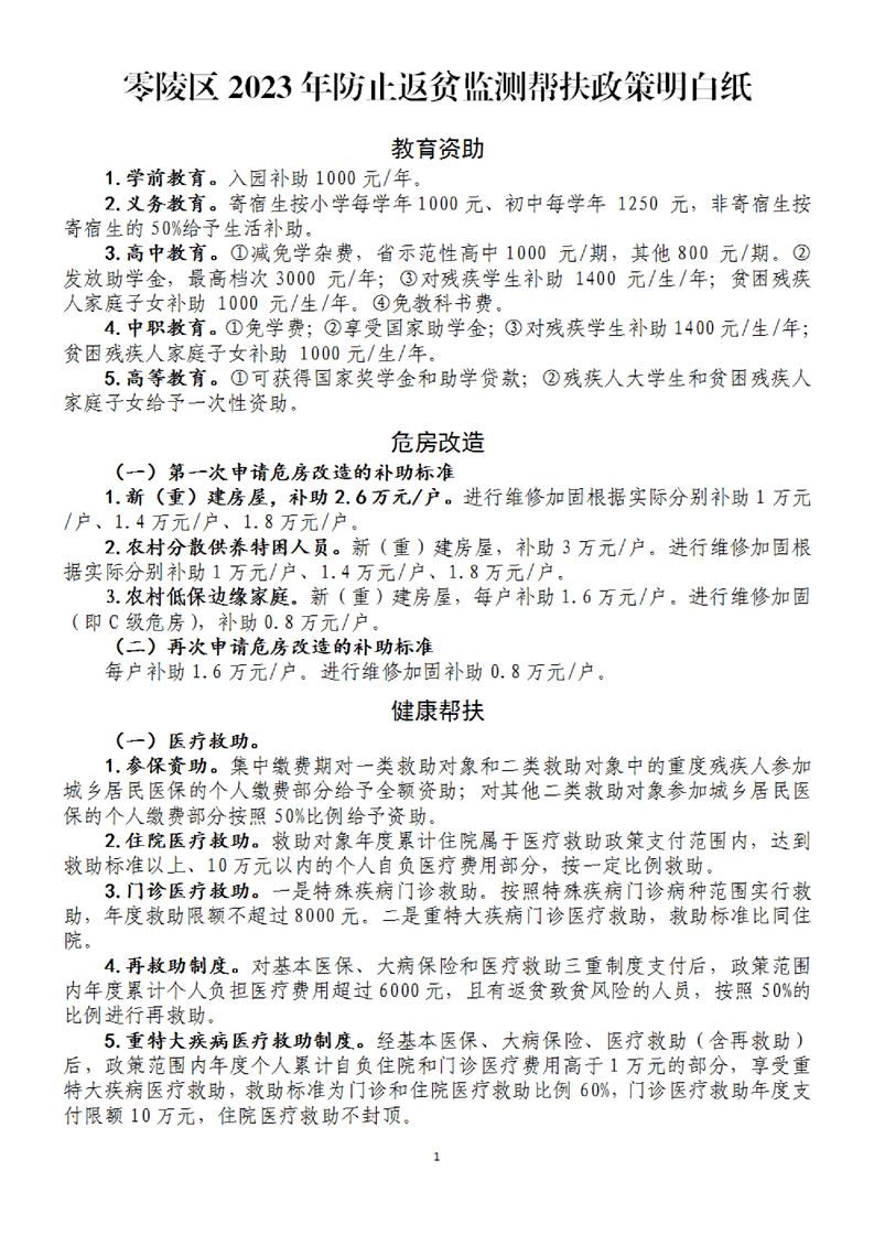 零陵区2023年防止返贫监测帮扶政策“明白纸”