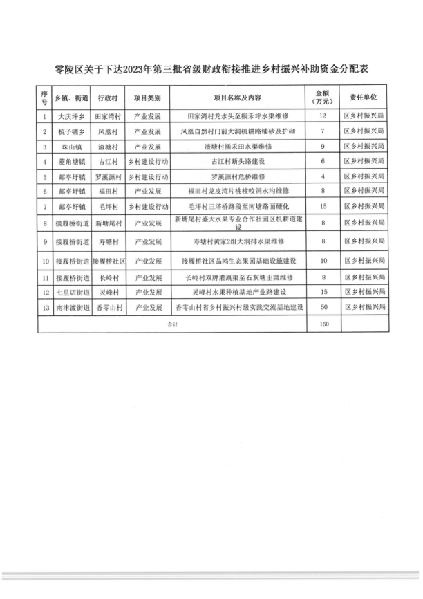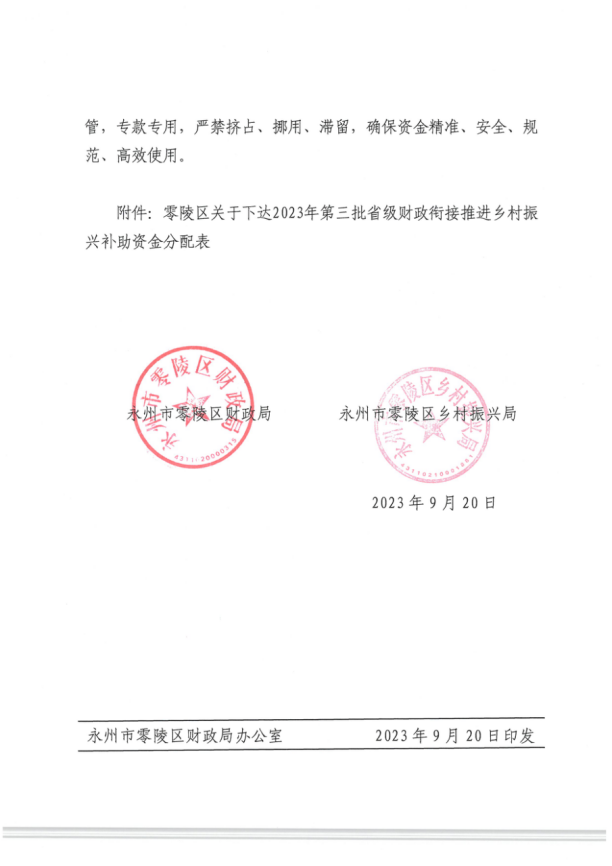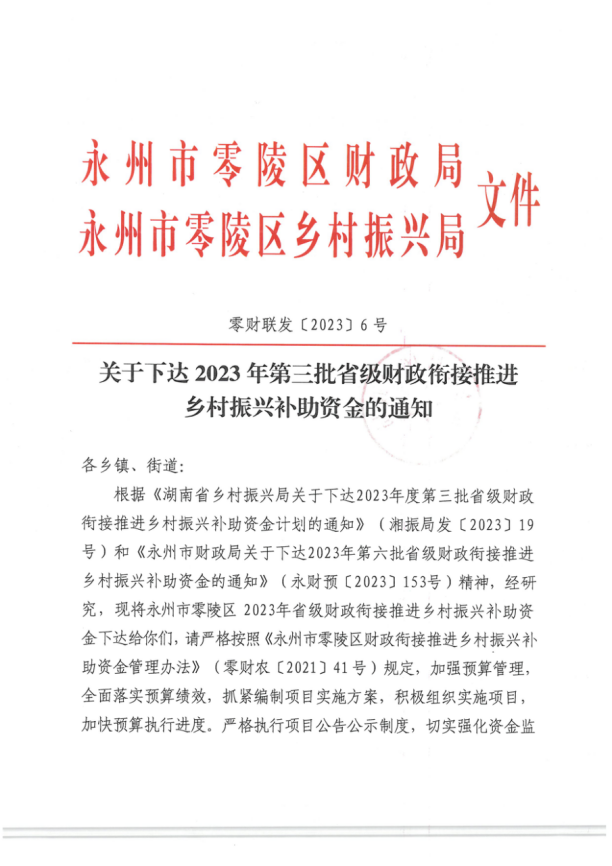 关于下达2023年第三批省级财政衔接推进乡村振兴补助资金的通知(零财联发〔2023〕6号)