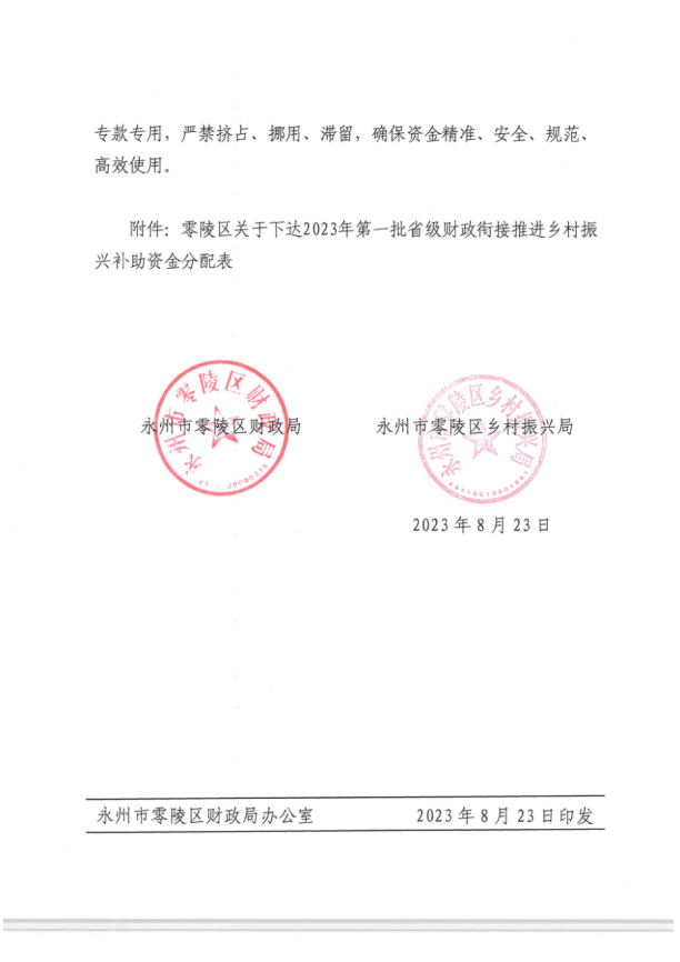 关于下达2023年第一批省级财政衔接推进乡村振兴补助资金的通知(零财联发〔2023〕4号)