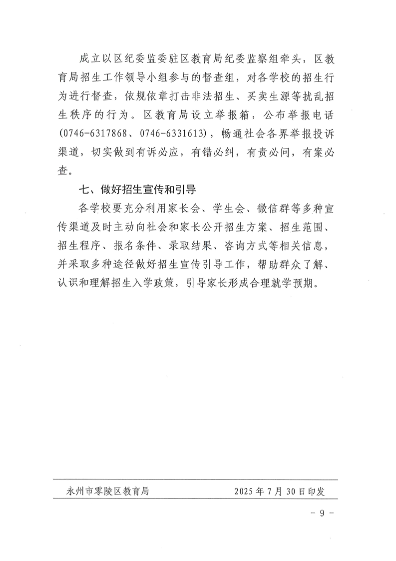 零陵区2025年普通中小学校和中职学校招生入学工作实施方案